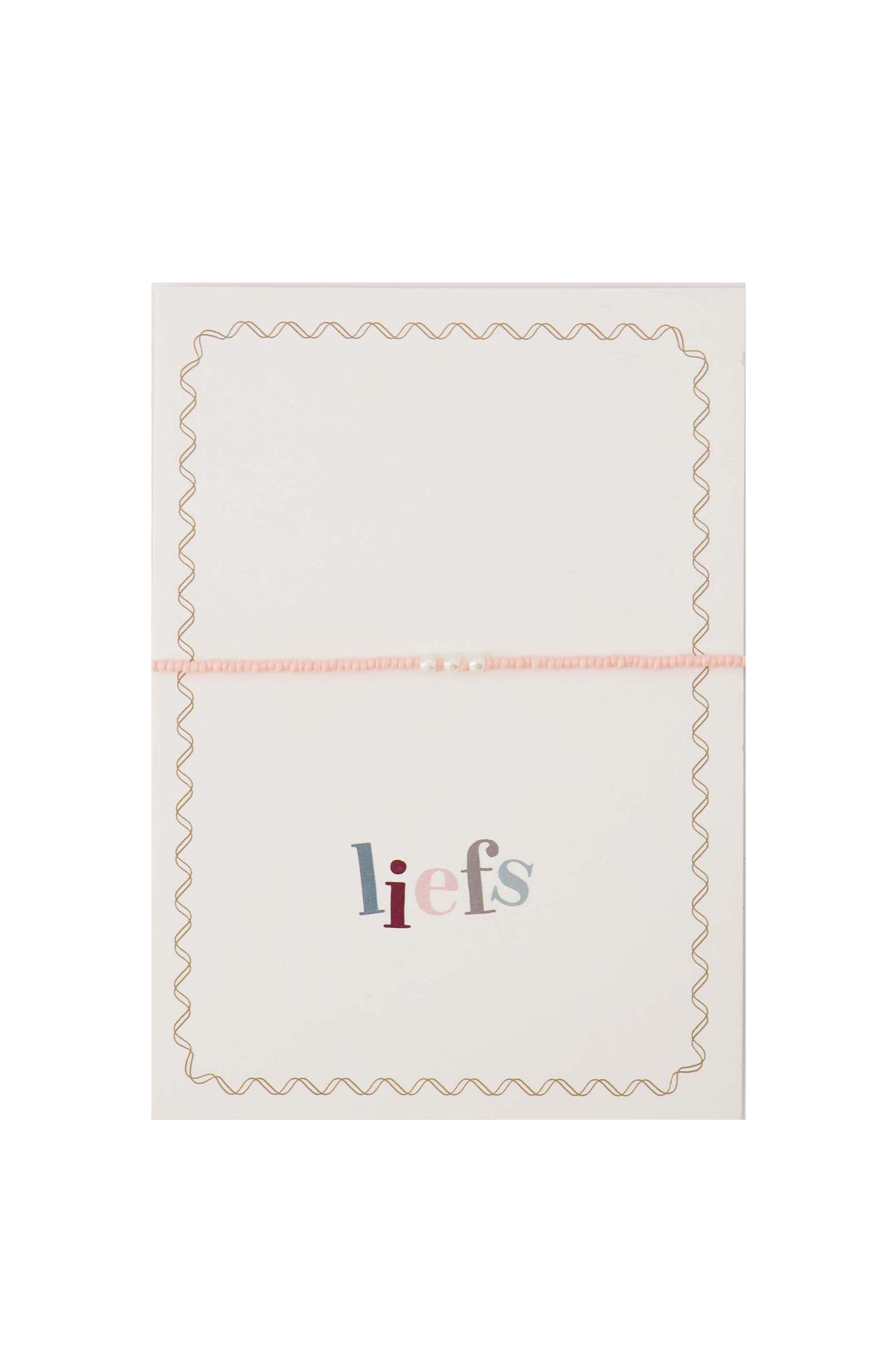 Dieses Zusss-Postkartenarmband ist eine herzliche Art, eine persönliche Botschaft zu übermitteln. Die Postkarte mit dem Wort "liefs" erhält durch das zarte, mehrfarbige Armband einen verspielten und weichen Look. Das Armband kombiniert kleine Perlen in einer sanften Farbe mit zarten Perlen, was es zu einem dezenten, aber besonderen Accessoire macht. Perfekt, um jemanden zu überraschen oder sich selbst damit zu verwöhnen.