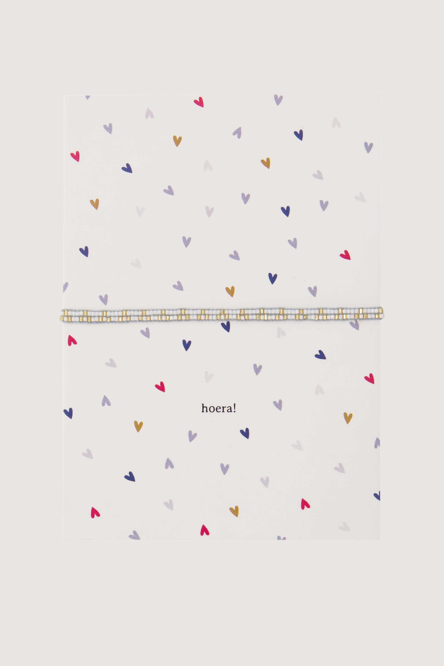 Das Zusss-Postkartenarmband eignet sich perfekt als farbenfroher Glückwunsch. Dieses Postkartenarmband besteht aus hochwertigem Papier mit einem feinen Perlenarmband in sanften, bunten Farbtönen. Die Kombination aus dezenten pastellfarbenen Herzen auf der Karte macht das Design einzigartig und festlich. Das Material ist robust und hochwertig, ideal als schönes Geschenk. Mit einer Größe von ca. 14 x 10 cm passt diese Karte hervorragend zu unserer Kartensammlung. Kombinieren Sie das hübsche Armband mit einer anderen schönen Grußkarte.