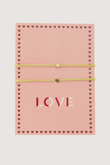 Diese Zusss-Grußkarte mit Freundschaftsbändchen ist perfekt, um deine Liebe zu zeigen. Die Karte hat einen warmen rosa Hintergrund mit einem Rahmen aus kleinen Herzen und dem Wort LOVE in Rottönen. Das Set enthält zwei hübsche Armbänder mit kleinen goldenen Herzen aus Baumwolle. Die Karte hat eine Größe von ca. 10 x 15 cm und eignet sich ideal als liebevolles Geschenk. Schenken Sie Ihren Lieben mit dieser Zusss-Grußkarte mit Freundschaftsbändchen, die Wärme und Liebe ausstrahlt, eine besondere Aufmerksamkeit. Schauen Sie sich auch unsere Geschenkekollektion für weitere besondere Geschenke an.