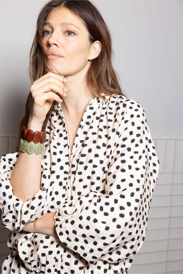 De Zusss armband van kralen is een stijlvolle accessoire die jouw outfit compleet maakt. Deze armband van kralen heeft een elastische band, waardoor hij comfortabel draagt en makkelijk past om elke pols. Het design bestaat uit grote, ovale kralen in een warme mid brown kleur, perfect voor een naturel en eigentijdse uitstraling. De Zusss armband van kralen is hét item voor een unieke, natuurlijke look. Combineer de armband met een van onze bruine truien om de outfit compleet te maken.