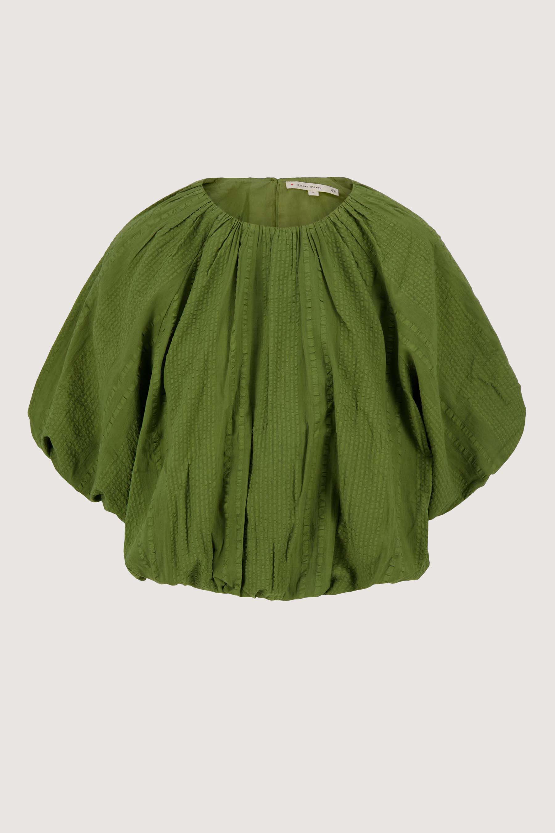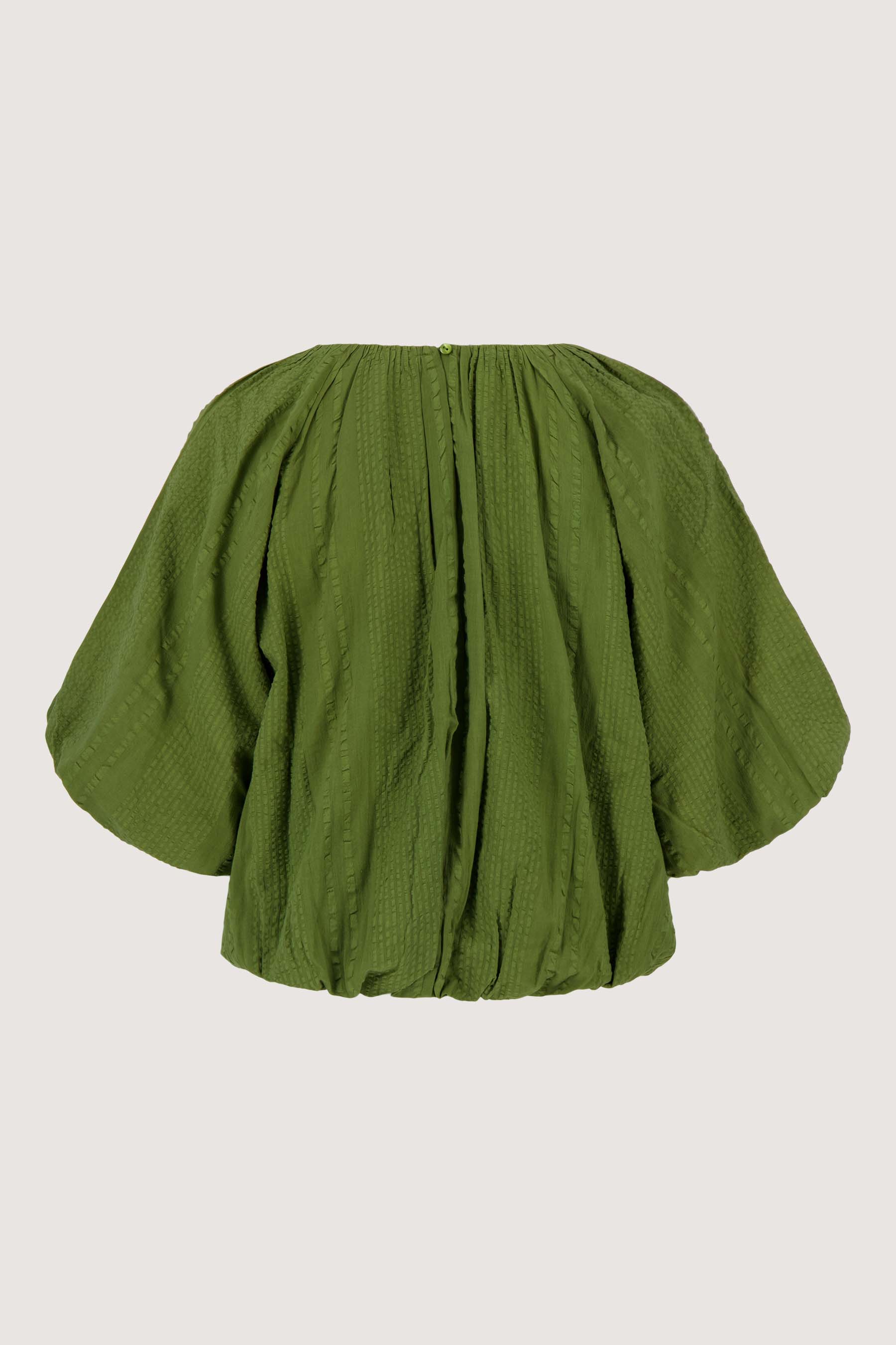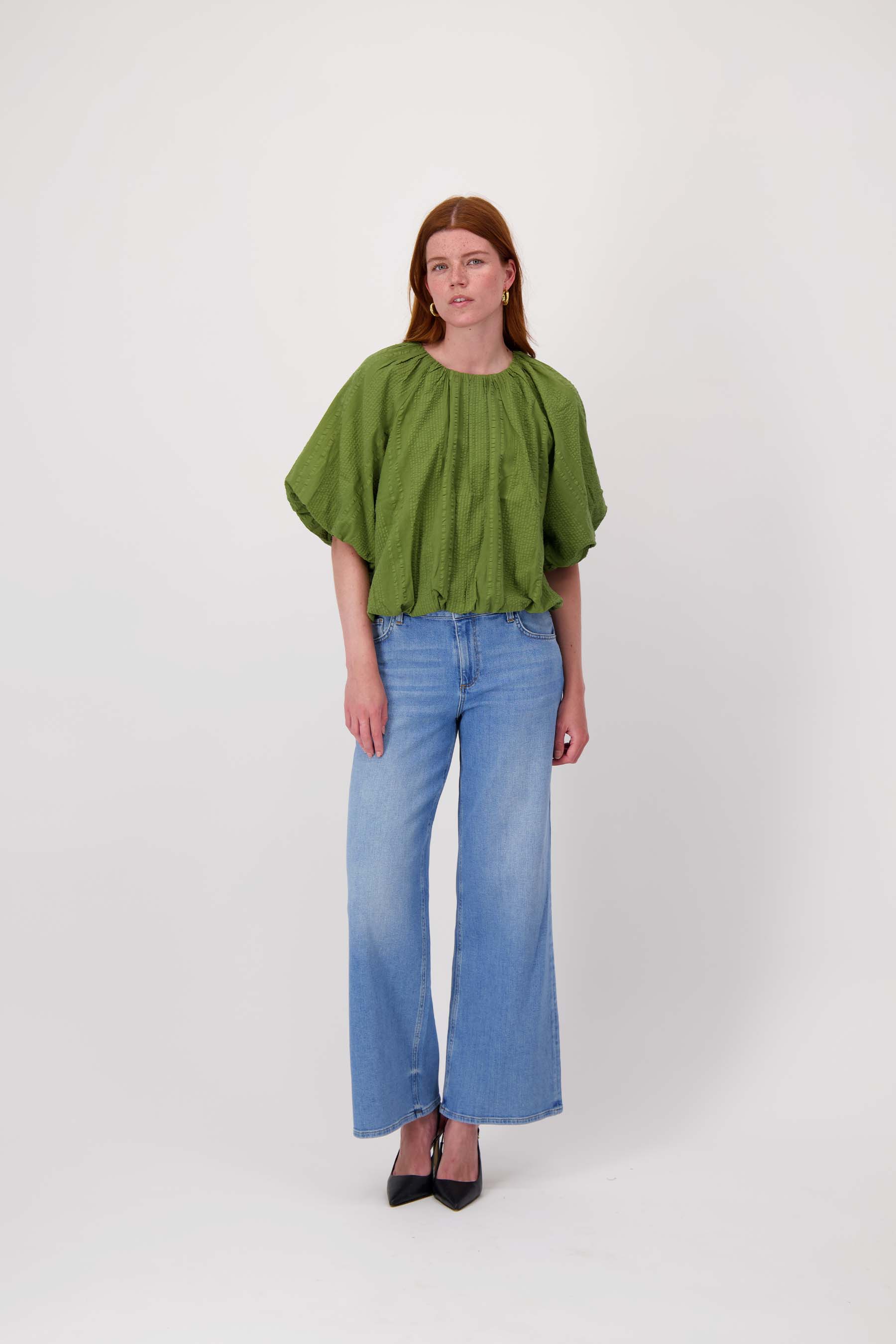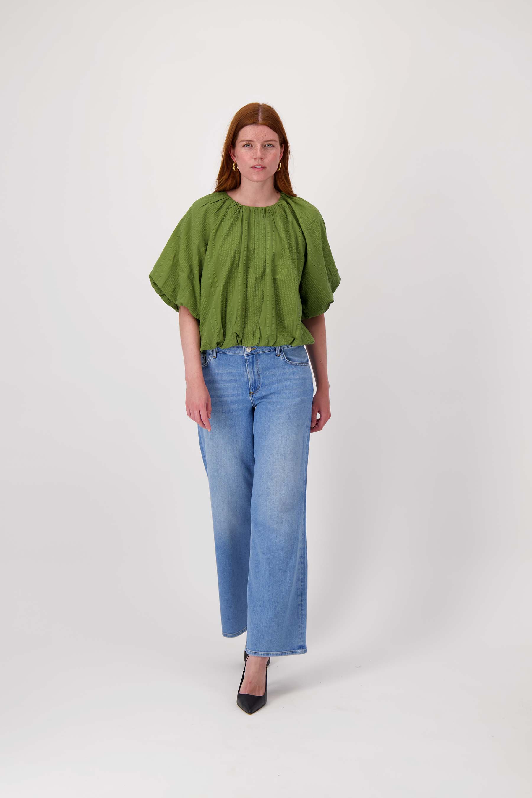 De ballon vleermuis top van Zusss brengt een unieke touch aan je garderobe. Deze ballon vleermuis top valt op door de rijke structuur en de speelse mouwen die luchtig en wijd uitlopen, perfect voor een casual maar stijlvolle outfit. De top is uitgevoerd in een lichte mosgroene kleur. Met deze ballon vleermuis top van Zusss voel je je comfortabel en modieus tegelijk. Combineer de ballon vleermuis top met een van onze (jacquard) jasjes