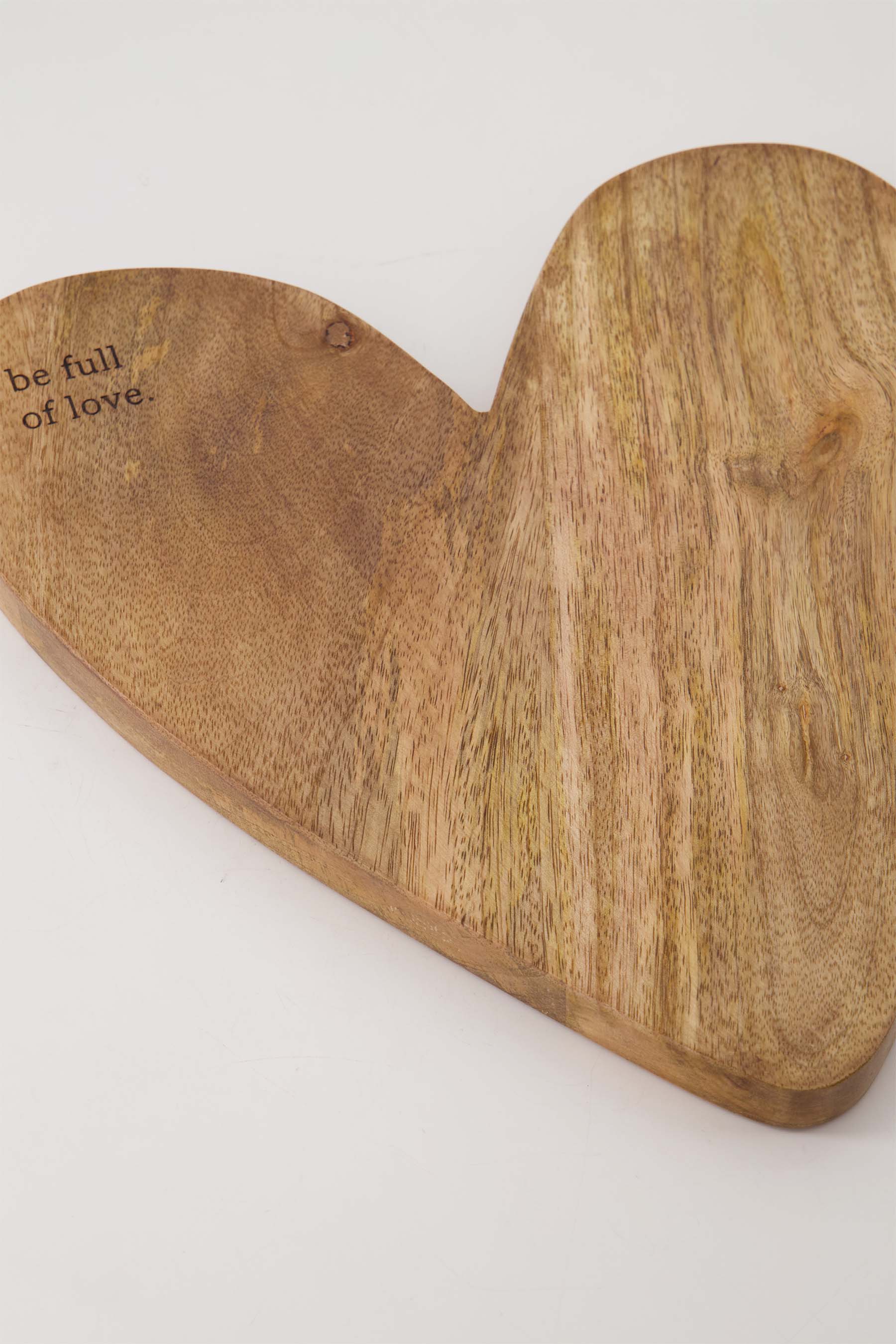 Die Zusss-Snackbrett-Herz ist perfekt für stimmungsvolle Snacks. Diese Snackbrett-Herz ist aus nachhaltigem Mangoholz gefertigt, hat eine natürliche Farbe und misst ca. 29 x 28 cm. Die Snackbrett-Herz hat ein einzigartiges herzförmiges Design und eine schöne, warme Holzstruktur mit dem Text „be full of love”. Ideal, um Snacks stilvoll zu servieren. Kombinieren Sie sie mit anderen Küchen- und Wohnaccessoiresaus unserem Sortiment für einen kompletten Look. Die Snackbrett Herz von Zusss verleiht jedem Tisch Atmosphäre und eine natürliche Note.