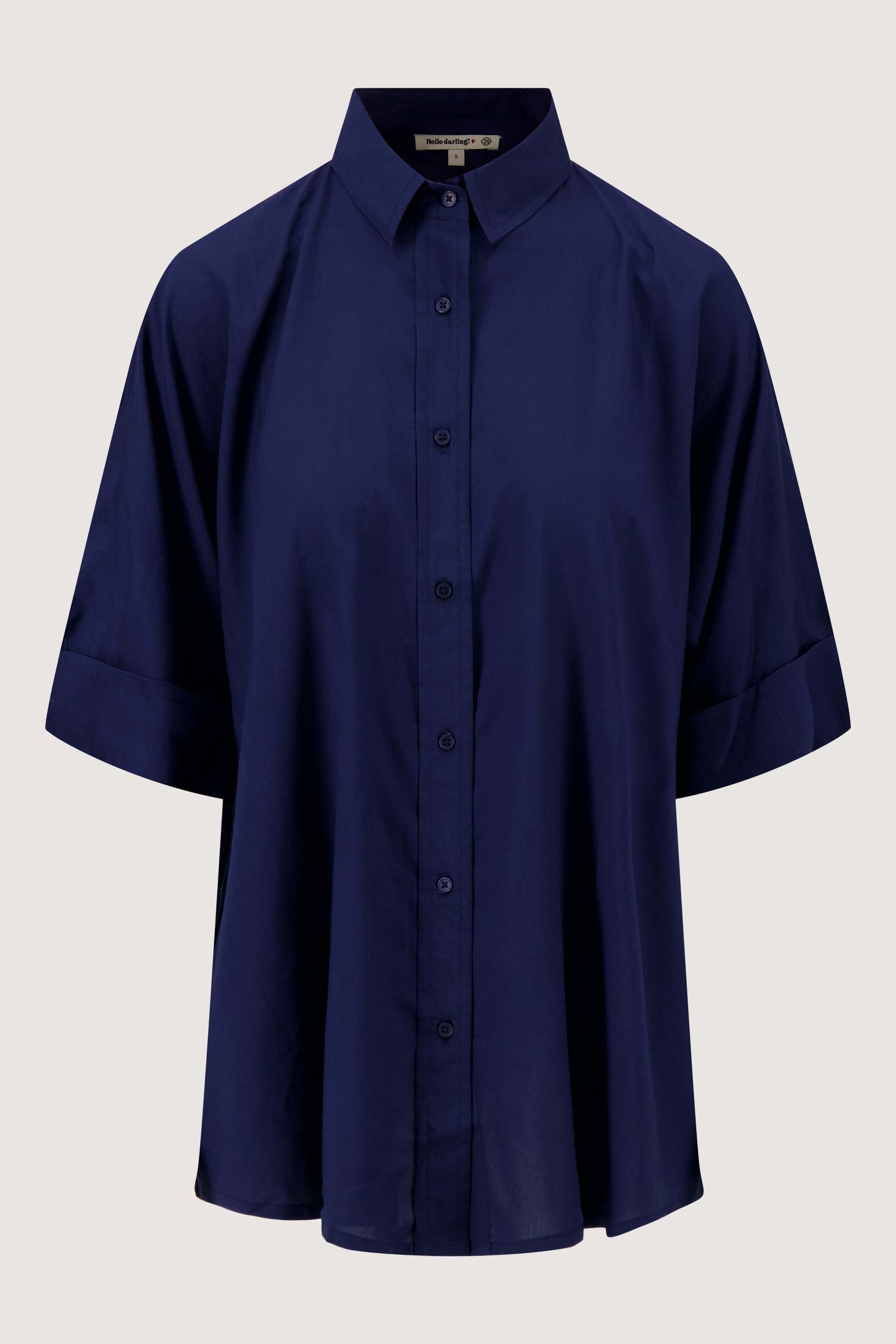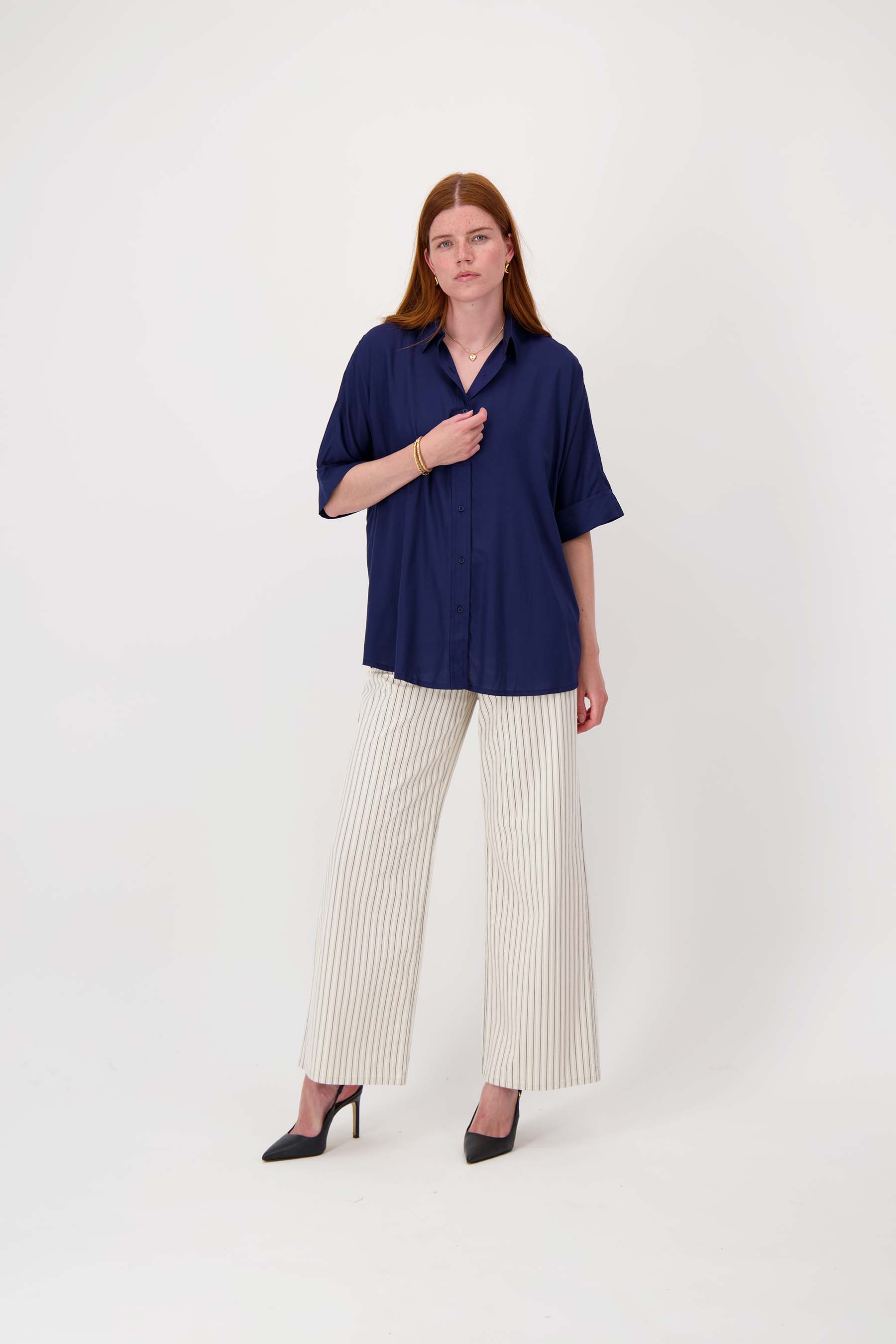 De Zusss blouse in boxy model is een perfecte keuze voor een lichte en luchtige zomeroutfit. Deze blouse in de kleur summer navy heeft een losse pasvorm met korte, omgeslagen mouwen en een knoopsluiting aan de voorkant. De blouse straalt een ontspannen maar toch verzorgde uitstraling uit, ideaal voor diverse gelegenheden. De navy kleur maakt het makkelijk te combineren met uiteenlopende kleuren en stijlen. Combineer de blouse met een van onze jeans voor een stoere look.