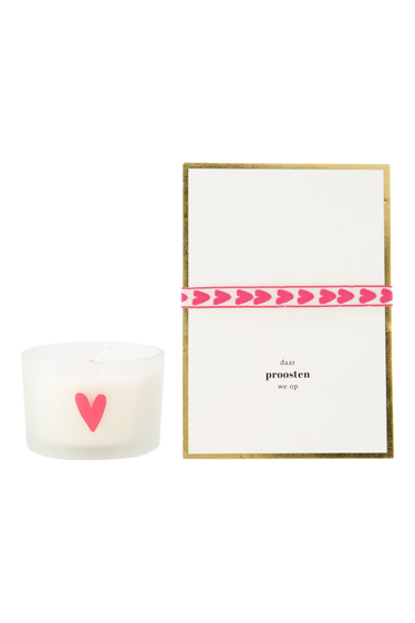 Deze Zusss cadeauset met kaars en ansichtkaart met presentje is perfect om samen op mooie momenten te proosten. De set bevat een witte kaars met een lief roze hartje en een bijpassende ansichtkaart met tekst "daar proosten we op", afgewerkt met een roze armbandje met hartjes. De zachte kleuren zorgen voor een warme sfeer in huis. Ideaal om cadeau te geven of te genieten van een knusse avond. Deze cadeauset brengt gezelligheid en een tikkeltje liefde in elke ruimte.