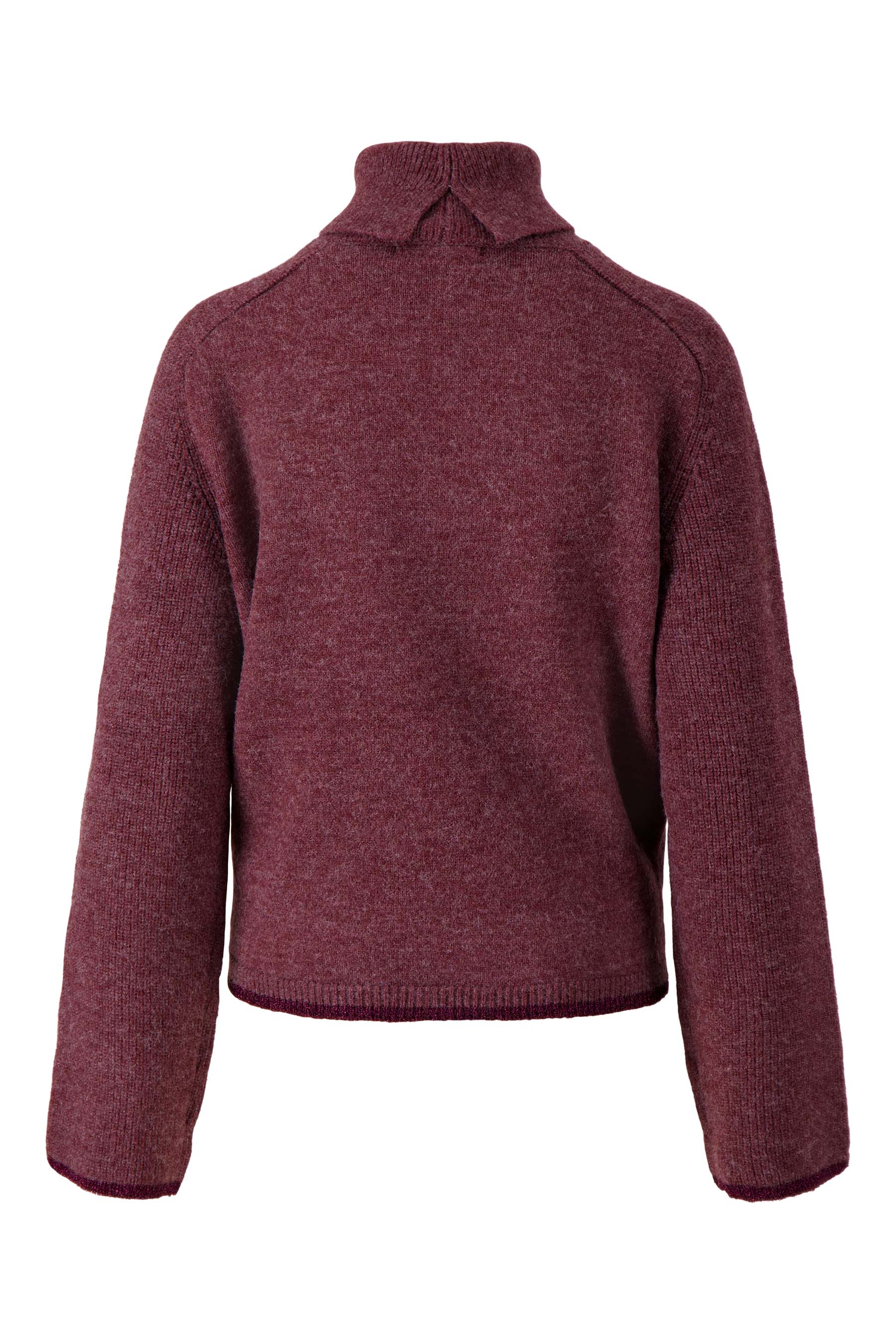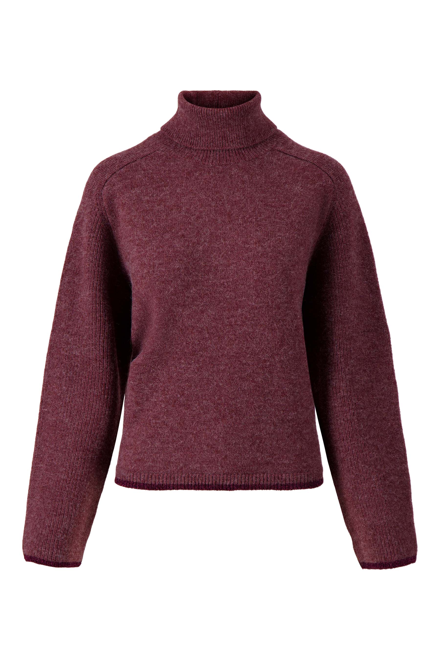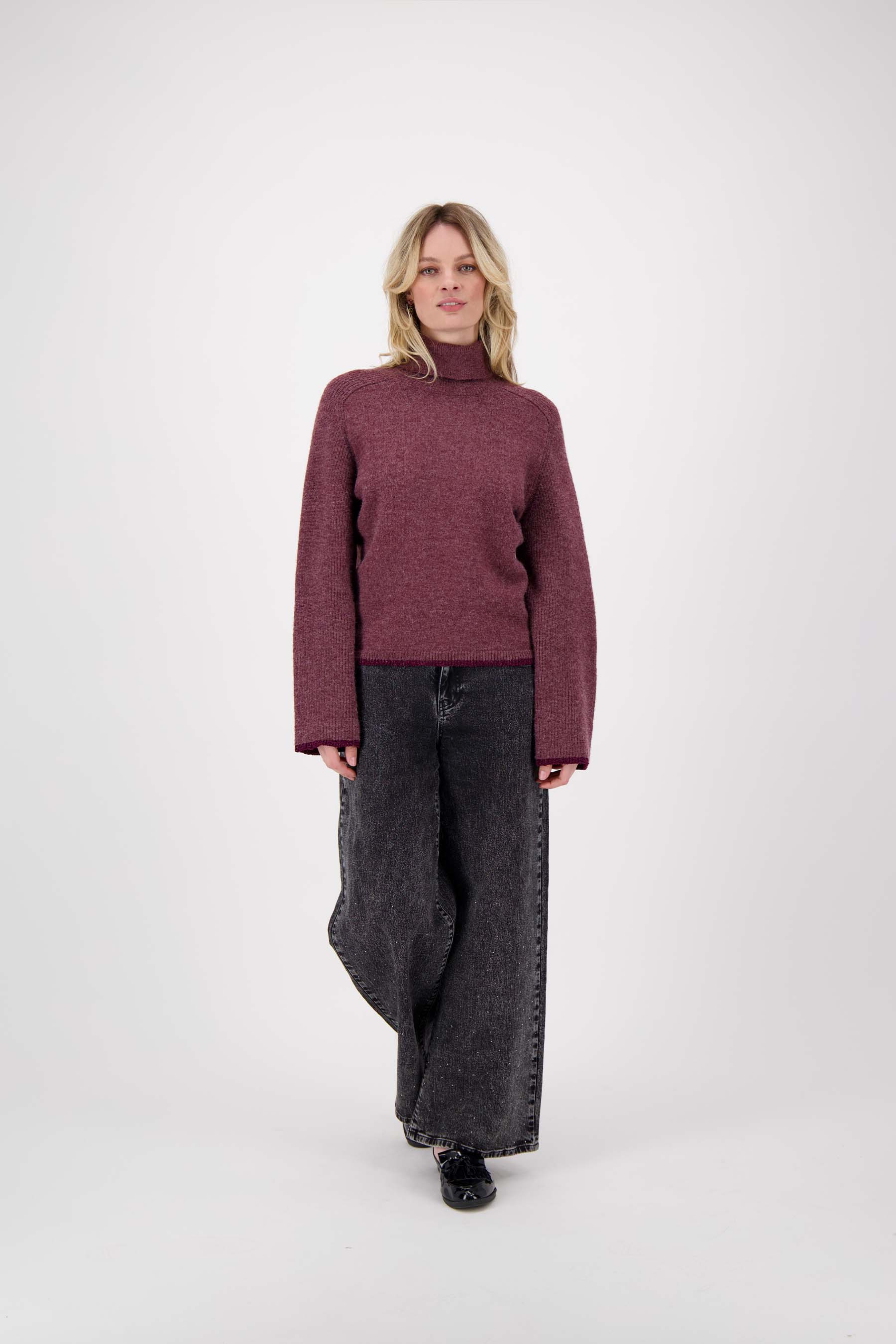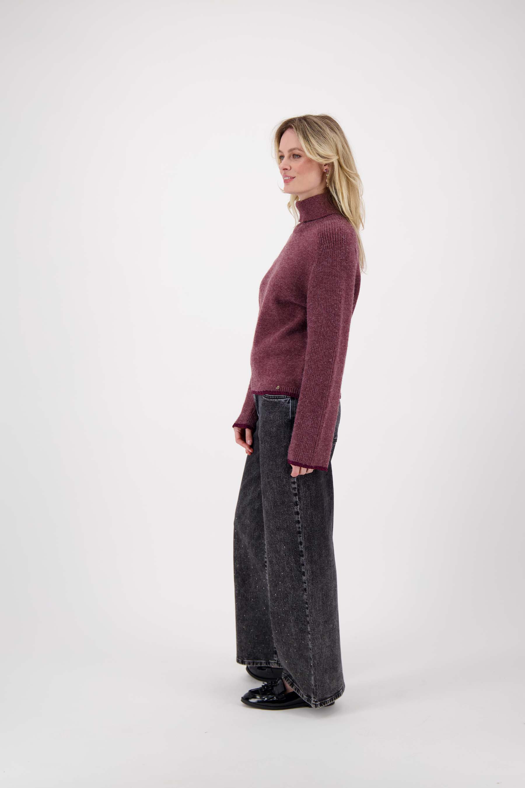 Dieser Zusss-Rollkragenpullover mit farbigem Rand ist ideal für alle, die Wärme und Komfort suchen. Der Rollkragenpullover ist in einem weichen Aubergine-Ton gehalten, der sich gut mit Ihren Lieblingsjacken und -hosen kombinieren lässt. Die dezente farbige Bordüre hebt diesen Pullover von der Masse ab. Mit seiner angenehmen Passform und dem weichen Stoff ist dieser Rollkragenpullover ein schönes Basic für Ihre Garderobe in diesem Herbst und Winter.