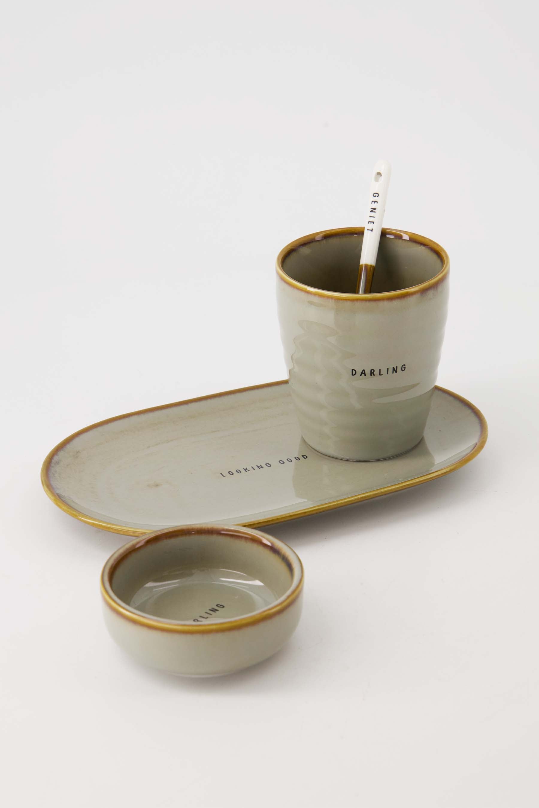 Die Zusss-Dipschale Darling ist eine charmante Ergänzung für Ihre Küchensammlung. Diese Dip-Schale hat eine sanfte grau-blaue Farbe mit einem warmen, braunen Rand und einem subtilen Text "Darling" in der Mitte. Sie ist ideal zum Servieren von Saucen oder kleinen Snacks und passt perfekt zu anderen Küchenaccessoires von Zusss. Die Dip-Schale verbindet Funktionalität mit einem verspielten, schlichten Design und verleiht Ihrem Tisch ein einzigartiges und mutiges Element. Der grau-blaue Farbton macht es einfach, sie mit verschiedenen Stilen in Ihrer Küche zu kombinieren.