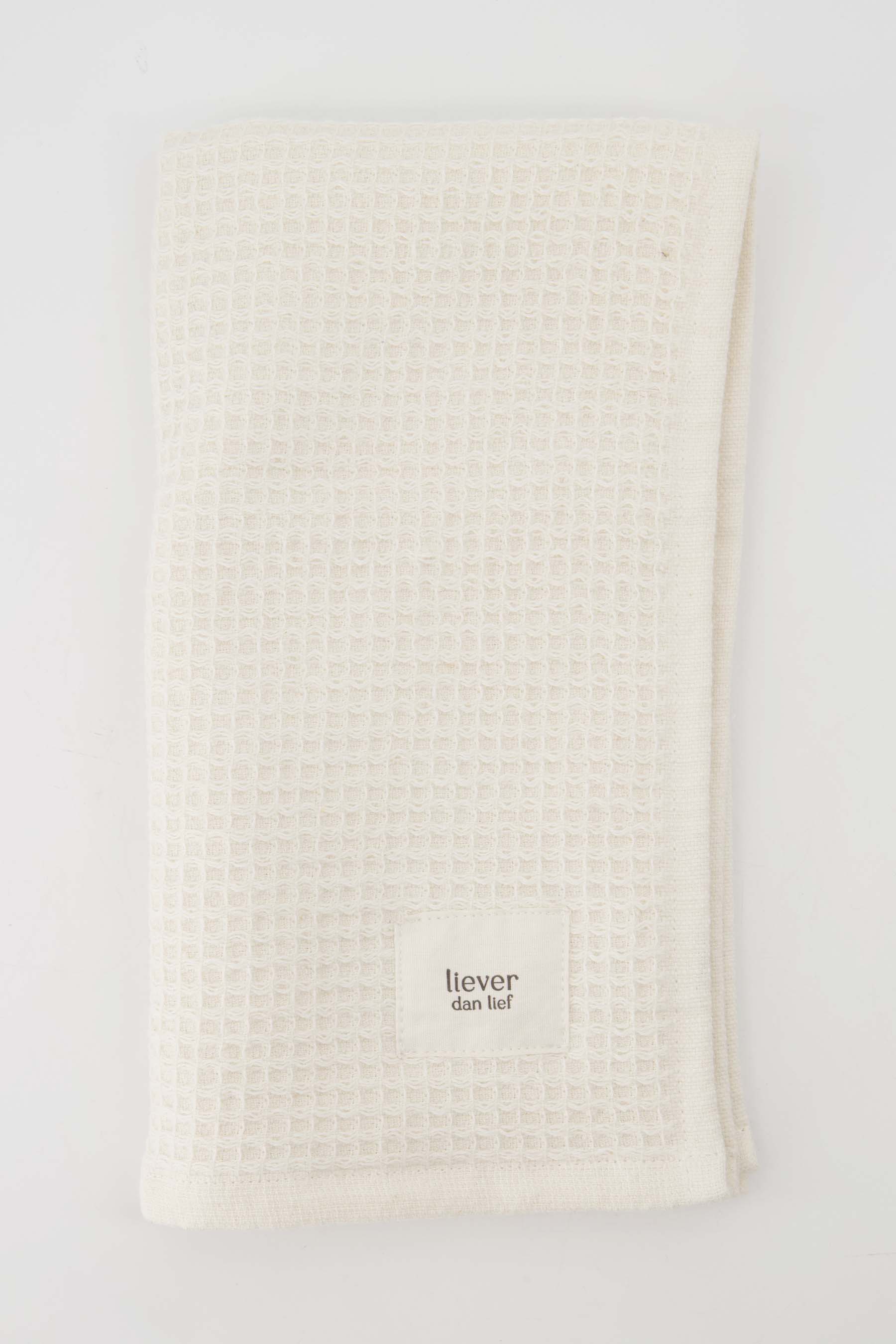 Dit Zusss gastendoekje off white zorgt voor een gastvrij gevoel in huis. Het neutrale off white past overal bij en voegt een subtiele warmte toe. Het fijne wafelstructuur geeft niet alleen een zachte touch, maar zorgt ook voor goede vochtopname. Met het kleine label “liever dan lief” maakt dit gastendoekje jouw badkamer of keuken nét een stukje sfeervoller. Perfect om je gasten op te vangen en je interieur een liefdevolle finishing touch te geven.