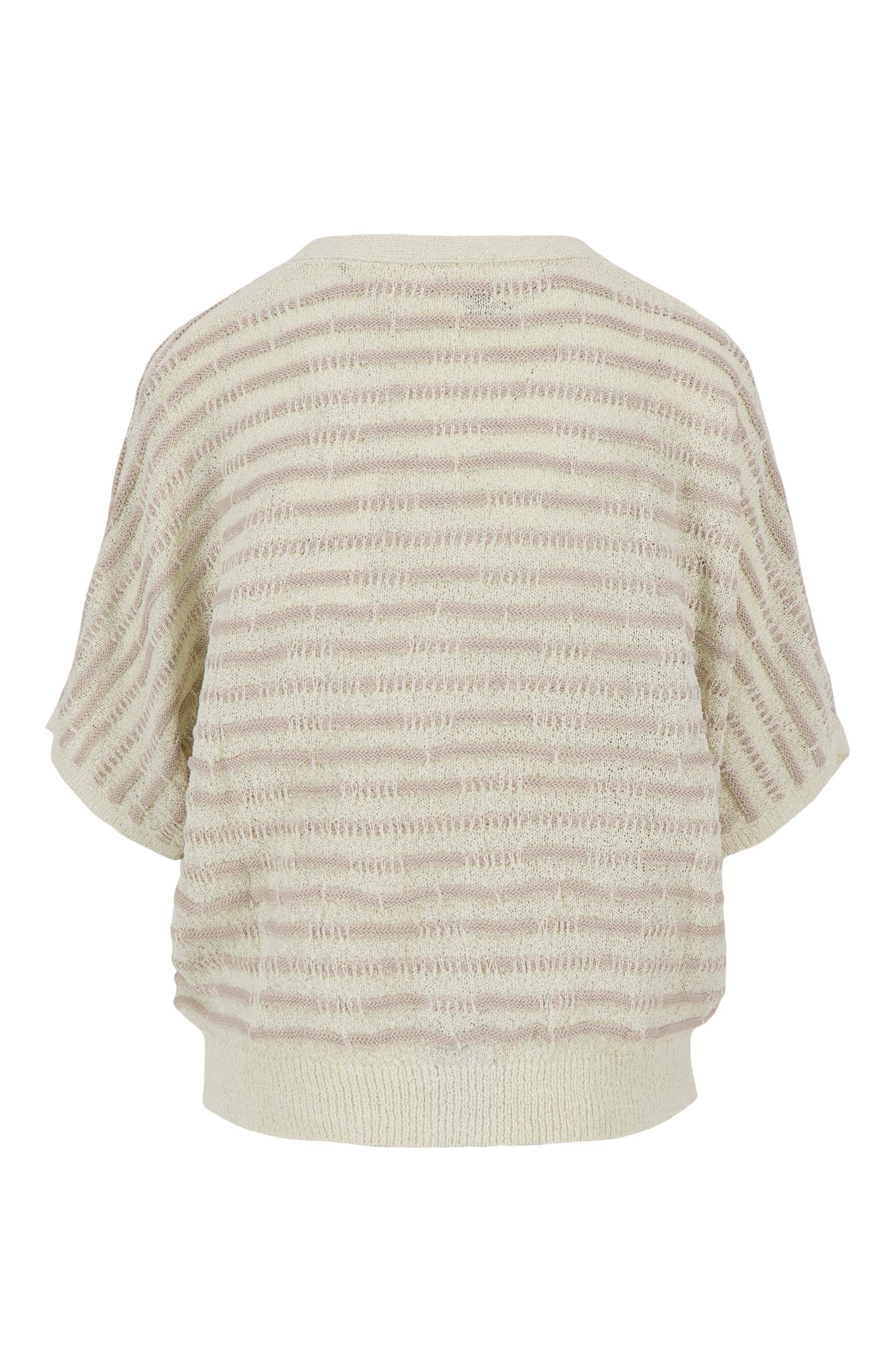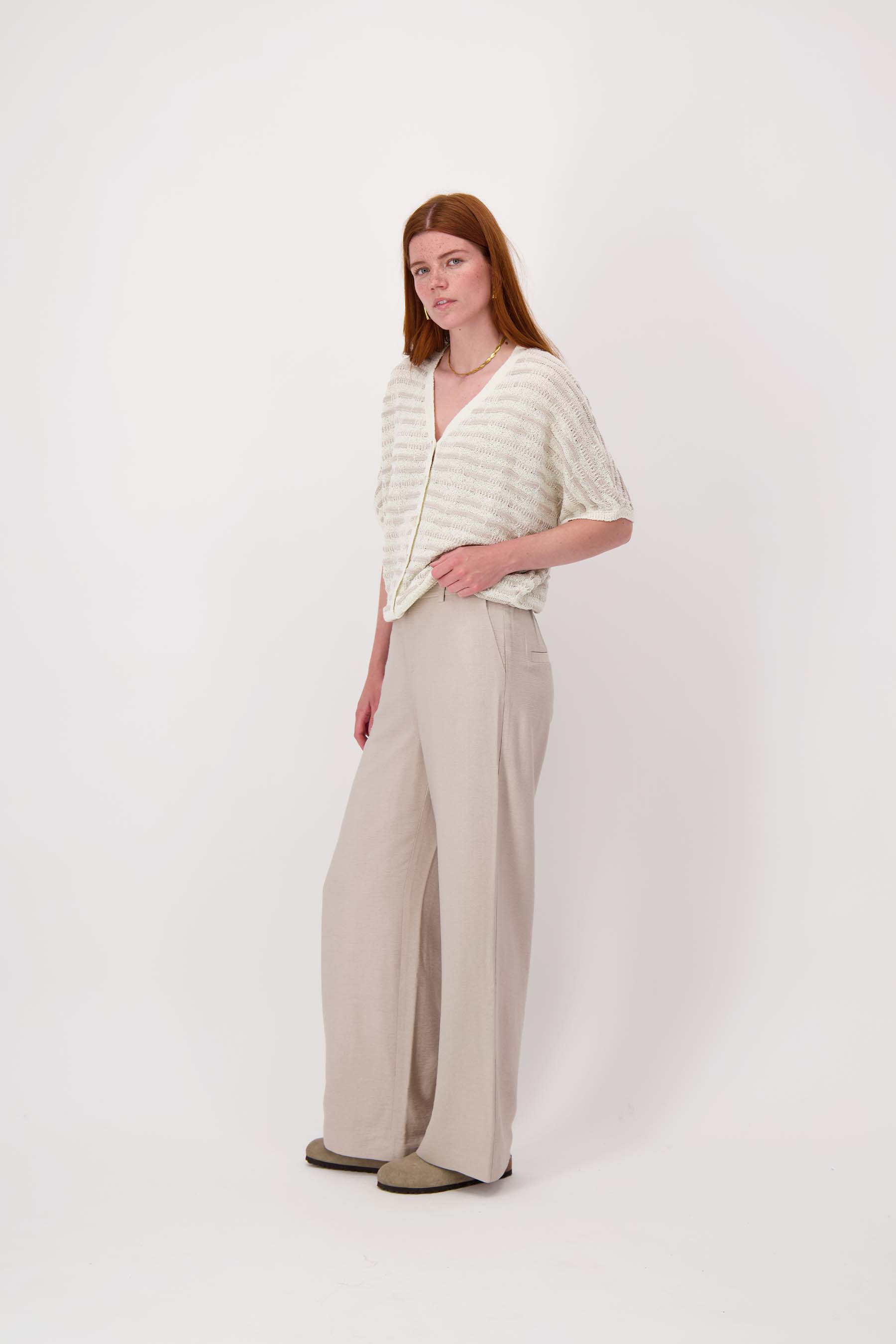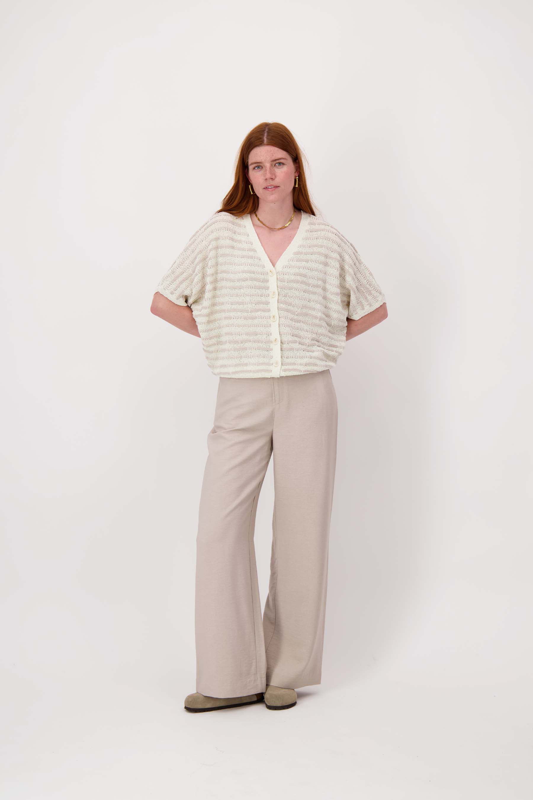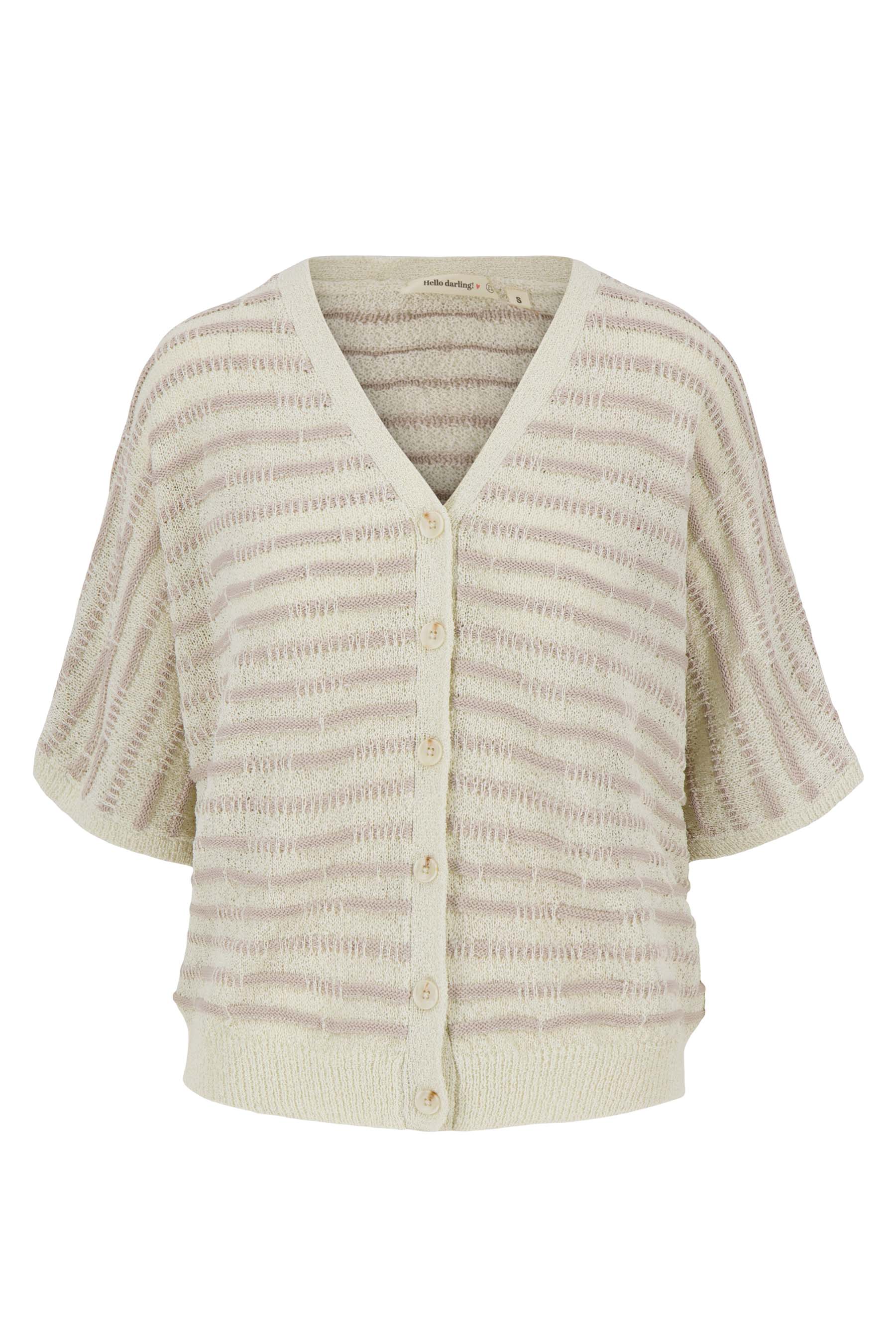 Die gestreifte Spencer-Strickjacke von Zusss ist eine luftige und stilvolle Ergänzung Ihrer Garderobe. Diese Strickjacke hat ein dezentes Streifenmuster und ist vorne mit Knöpfen versehen, die ein einfaches Schließen ermöglichen. Die Strickjacke ist in der Farbe „Darker Sand” erhältlich, die sich vielseitig mit vielen Outfits kombinieren lässt. Mit ihren kurzen Ärmeln und ihrer lockeren Passform setzen Sie mit der gestreiften Spencer-Strickjacke von Zusss mühelos ein modisches Statement. Kombinieren Sie die Spencer-Strickjacke mit einem unserer langärmeligen Oberteile für das perfekte Outfit.