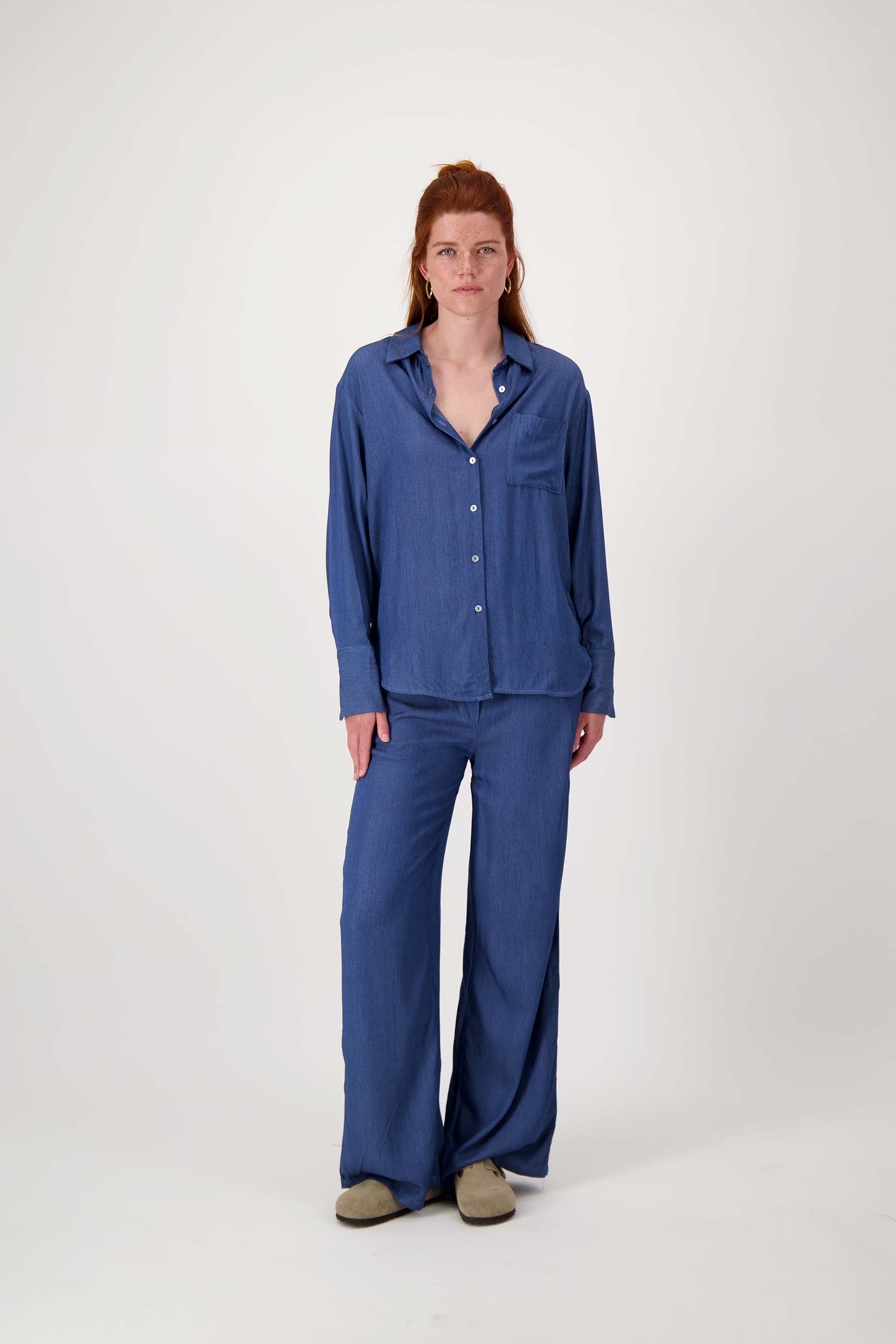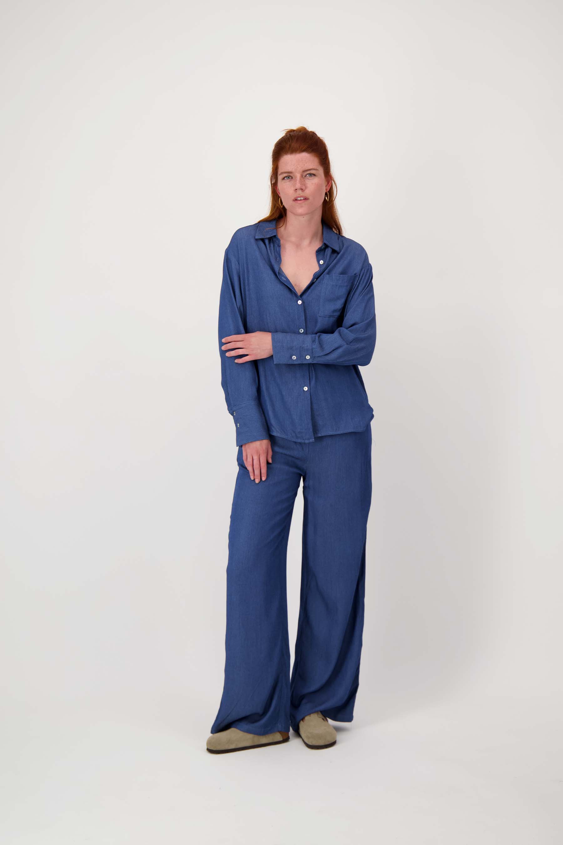 De Zusss gestreepte denim blouse is een veelzijdige must-have in je garderobe. Deze blouse valt op door de subtiele strepen en de mid blue denim kleur, die perfect combineert met diverse outfits. Met een comfortabele pasvorm, een klassieke kraag en een borstzakje, straalt deze blouse casual elegantie uit. De blouse is gemaakt van zacht, prettig draagbaar materiaal dat fijn aanvoelt op de huid. Voeg een eigentijdse touch toe aan je dagelijkse look met deze gestreepte denim blouse van Zusss, ideaal te combineren met een van onze denim jeans.