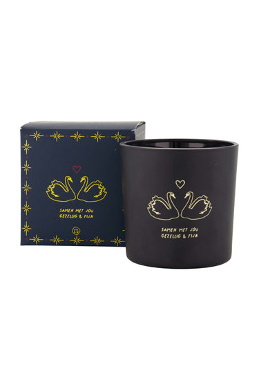 Die Zusss-Duftkerze ist perfekt, um Ihr Wohnzimmer besonders gemütlich zu gestalten. Die Duftkerze strahlt mit ihrem dunkelblauen Glas und den goldenen Schwanenmotiven Wärme aus und ist ein stilvoller Blickfang. In der passenden Schachtel verpackt, eignet sich die Duftkerze ideal zum Verschenken oder zum Selbermachen. Die Zusss-Duftkerze schafft eine angenehme Atmosphäre, die zum Entspannen einlädt. Mit dieser attraktiven Duftkerze holen Sie sich den warmen und wiedererkennbaren Zusss-Stil in Ihr Zuhause.