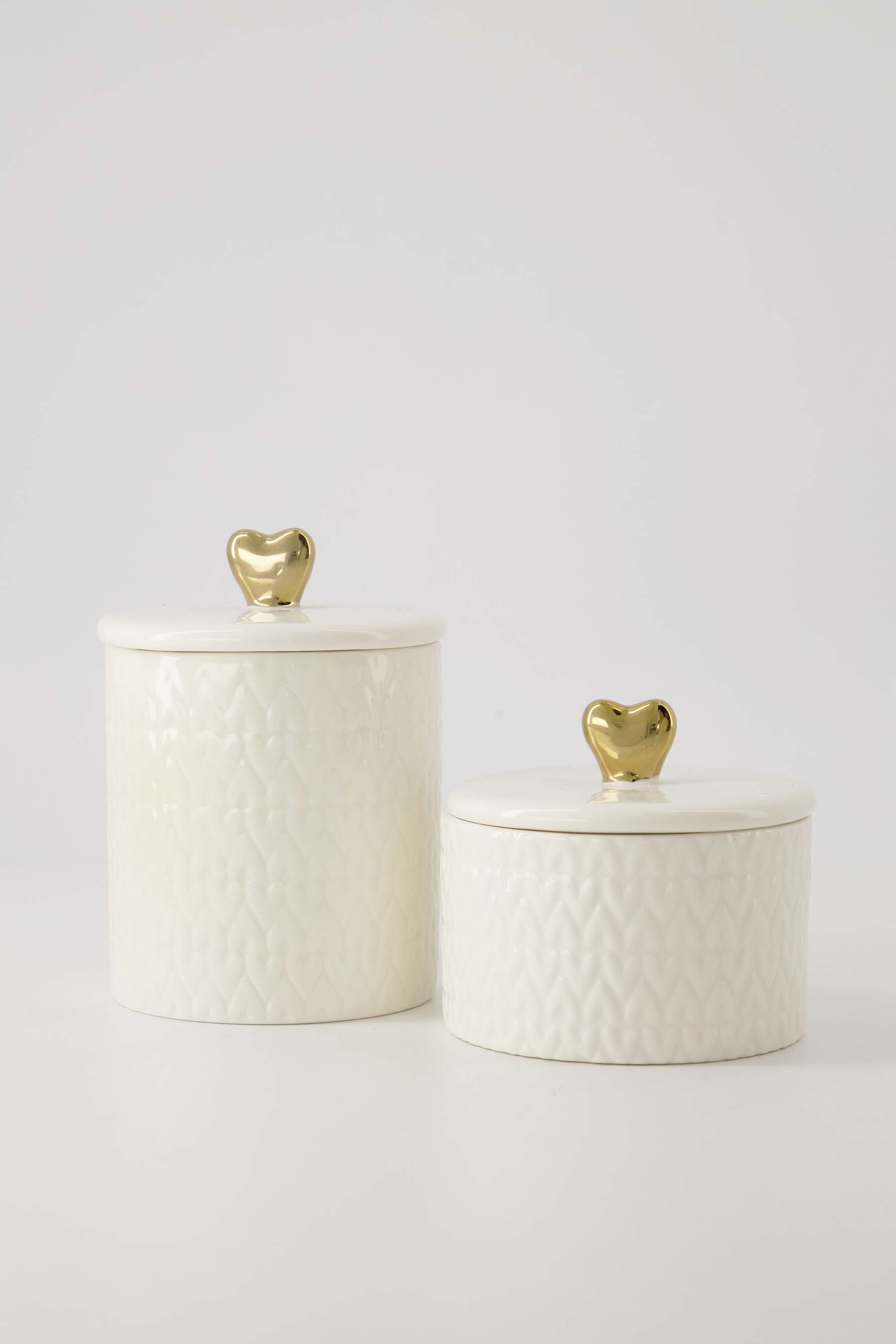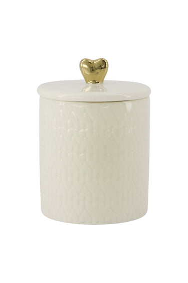 Keramik-Duftkerze mit Deckel Herz M weiß/gold