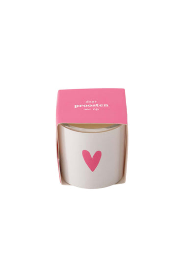 Die Zusss-Duftkerze bringt Wärme und Gemütlichkeit in jeden Raum. Diese Duftkerze hat eine stilvolle weiße Verpackung mit einem verspielten rosa Herz und einer fröhlichen Umhüllung mit der Aufschrift "Toasting". Sie ist wie geschaffen für besondere Momente, zum Beispiel bei einem entspannten Abend oder einem besonderen Anlass. Die Farben Weiß und Rosa schaffen einen sanften Look, der gut in ein gemütliches Ambiente passt. Mit der Zusss-Duftkerze können Sie ganz einfach einen schönen Duft und eine schöne Atmosphäre in Ihrem Zuhause schaffen.
