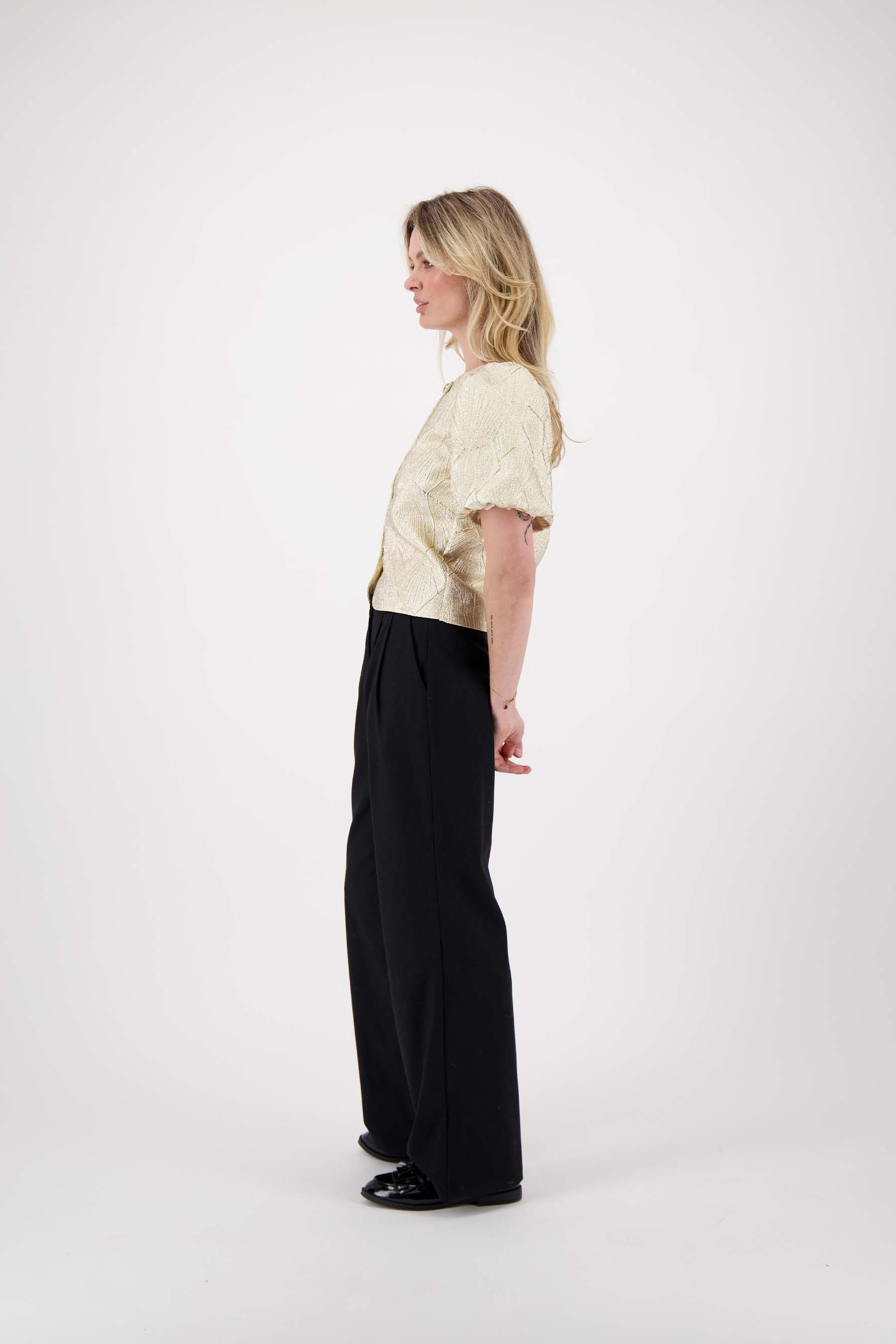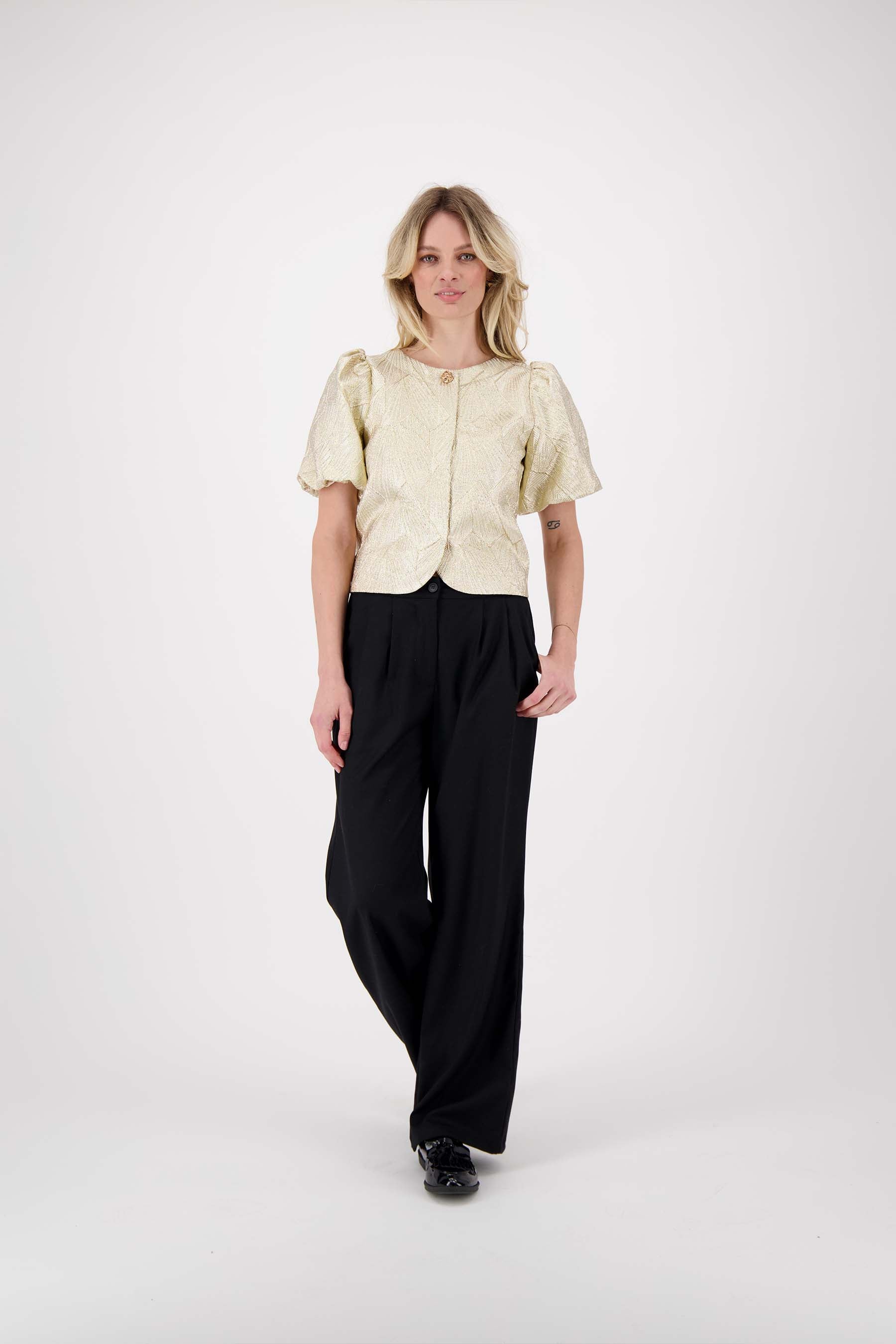 Diese Jacquard-Glanzjacke von Zusss verleiht Ihrem Outfit einen dezenten, festlichen Look. Die Jacke mit kurzen Puffärmeln und Rundhalsausschnitt hat einen weichen, kit und silbernen Glanz, der sich schön mit ihr bewegt. Die Textur erzeugt einen verspielten Effekt, perfekt für einen besonderen Tag oder um Ihren Look aufzuwerten. Kombinieren Sie diese Jacke mit etwas Schlichtem, um den besonderen Stoff hervorzuheben. Diese Jacke mit Jacquard-Glanz ist eine schöne Ergänzung für Ihre Garderobe, wenn Sie einen weichen Twist mit Charakter lieben.