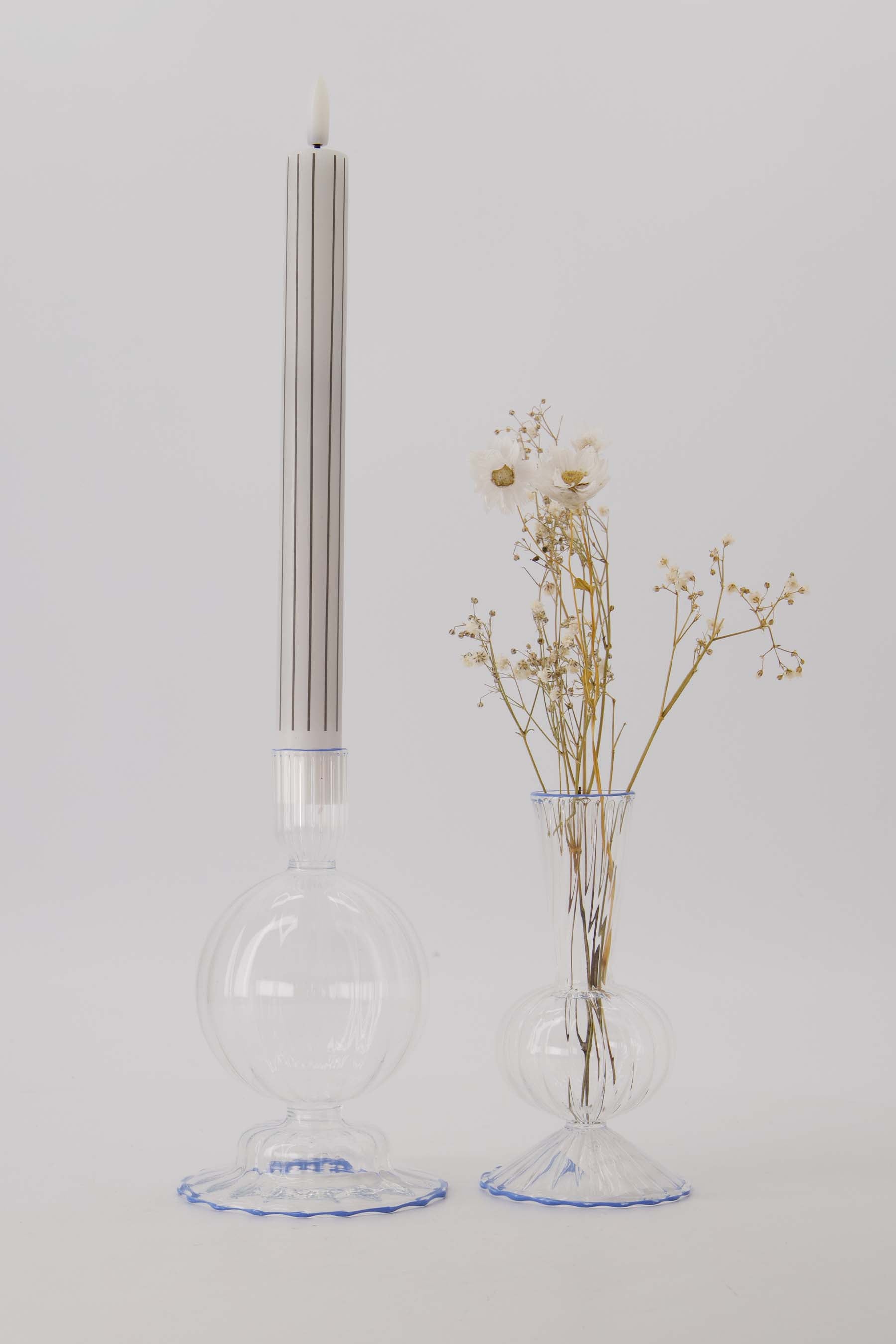 Glaskerzenhalter mit Wölbung und Riffelung