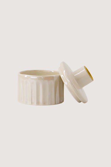 Keramik-Kerzenhalter mit Perlmutt-Riffelung und Deckel