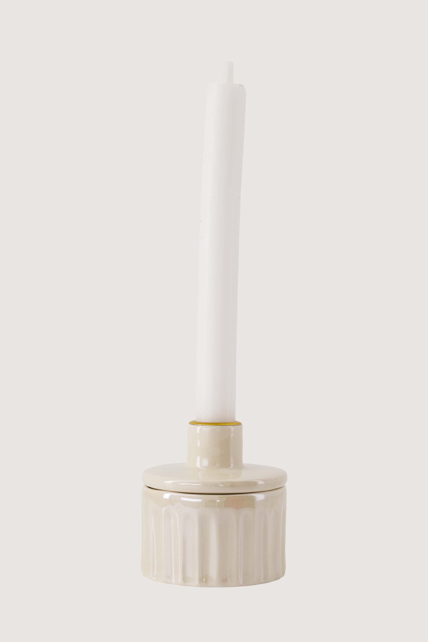 Zusss Kerzenhalter Keramik Perlmutt Riffelung mit Deckel in Sandfarbe