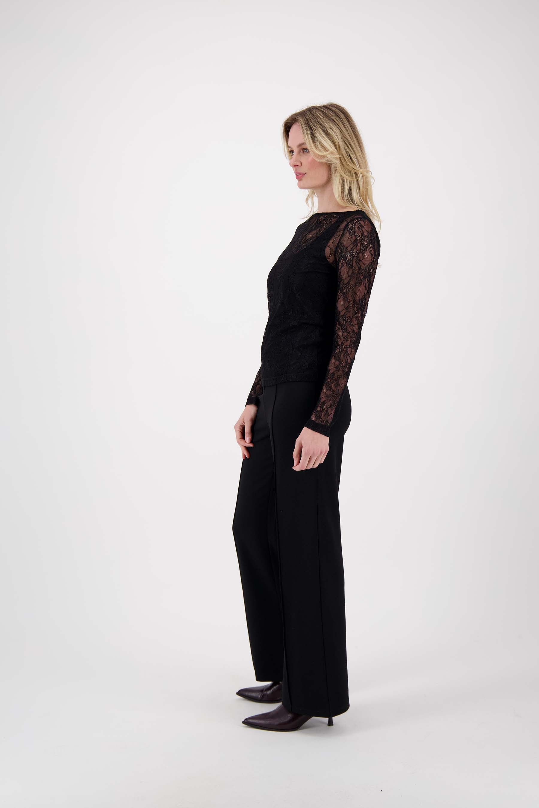 Deze zwarte kanten top met boothals van Zusss is een subtiele eyecatcher in je garderobe. De fijne kanten stof zorgt voor een elegante en vrouwelijke... Lees meer
