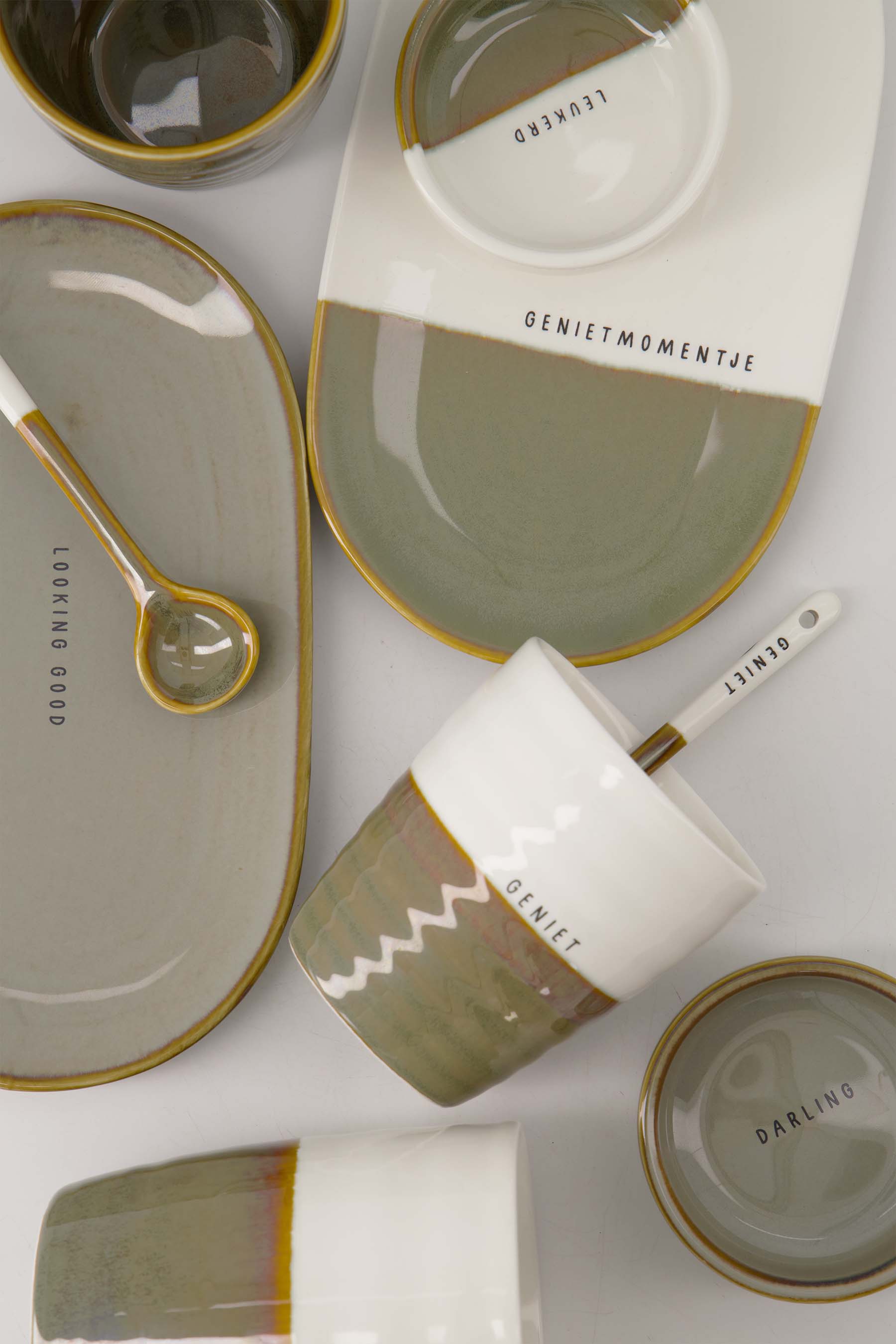 Die Zusss enjoy Kaffeetasse ist perfekt für alle, die sich bei einem heißen Getränk entspannen möchten. Die Tasse besticht durch ihr warmes weißes und dunkelgrünes Farbspiel, das einen natürlichen und gemütlichen Look in Ihrer Küche schafft. Mit dem Schriftzug "enjoy" erinnert die Tasse auf subtile Weise daran, den Moment zu genießen. Dank der robusten Keramik liegt sie gut in der Hand und ist ideal für den täglichen Gebrauch. Ergänzen Sie Ihre Küchensammlung um diesen Kaffeebecher und genießen Sie jede Tasse Kaffee auf Ihre Art.
