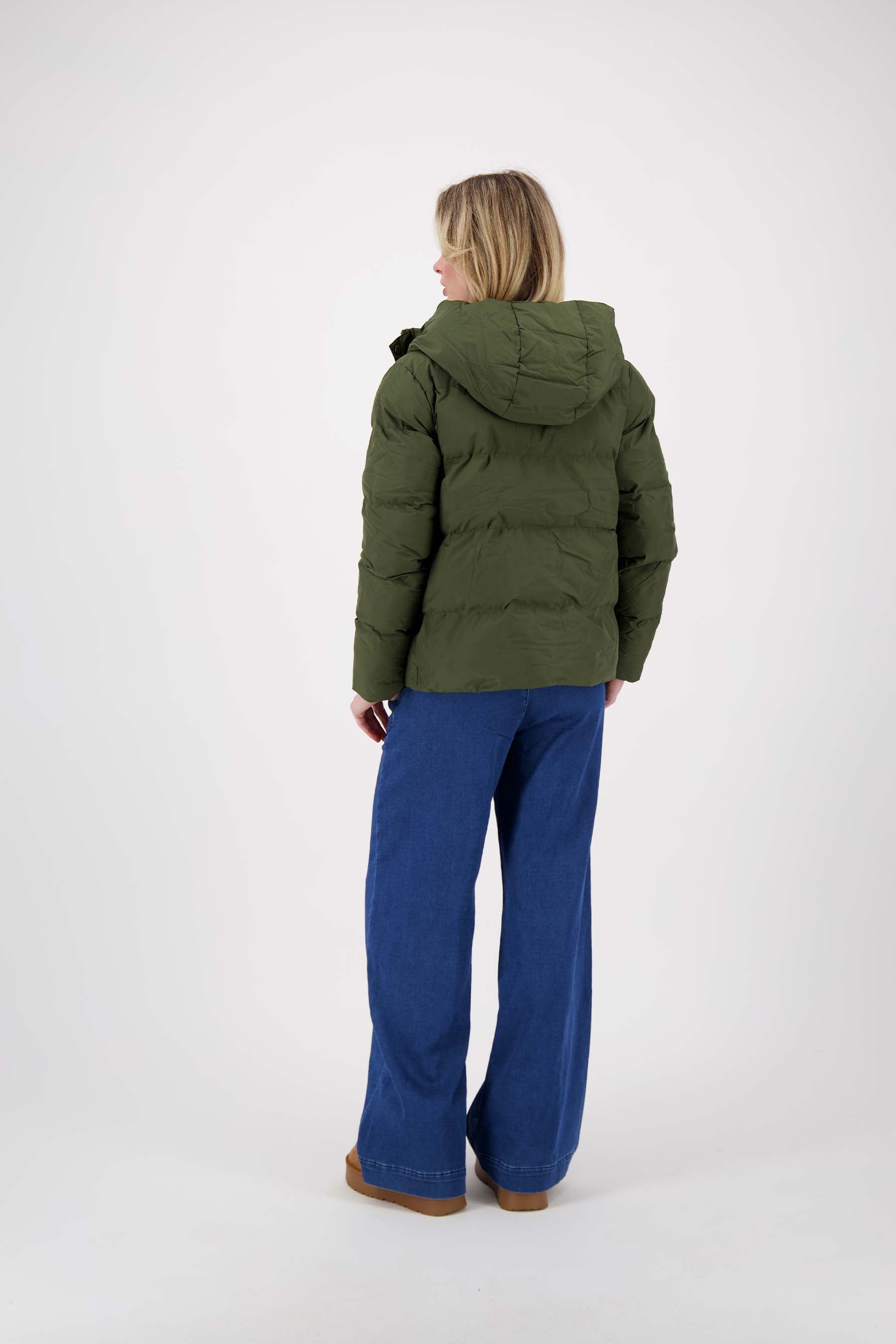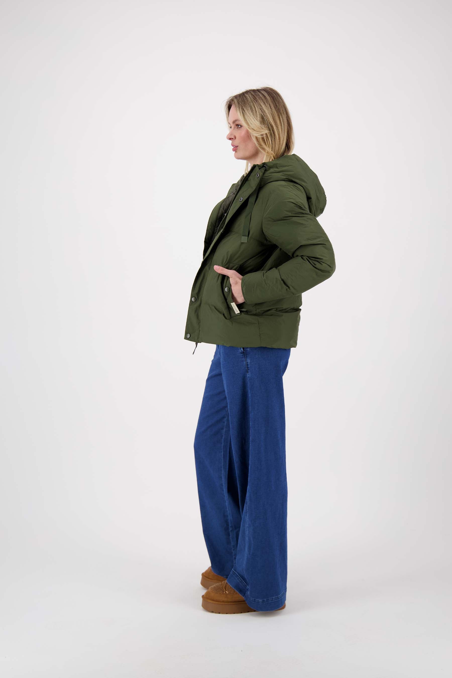 Zusss kurzer Bubblecoat mit Teddydetails in dunkelgrün
