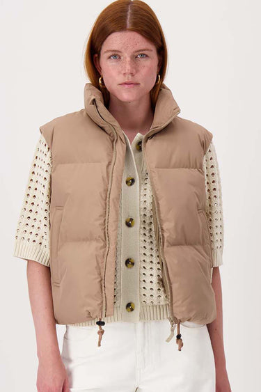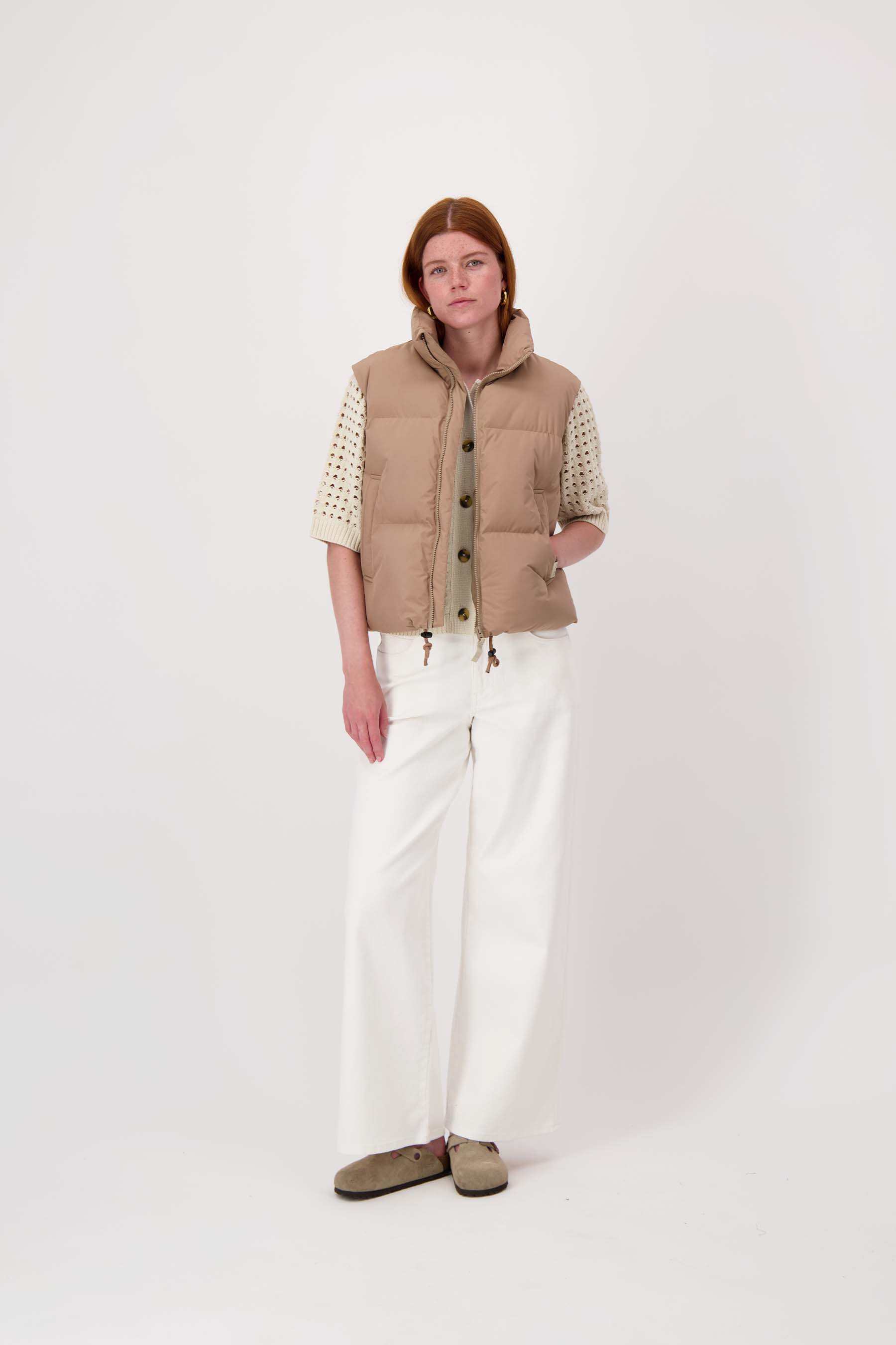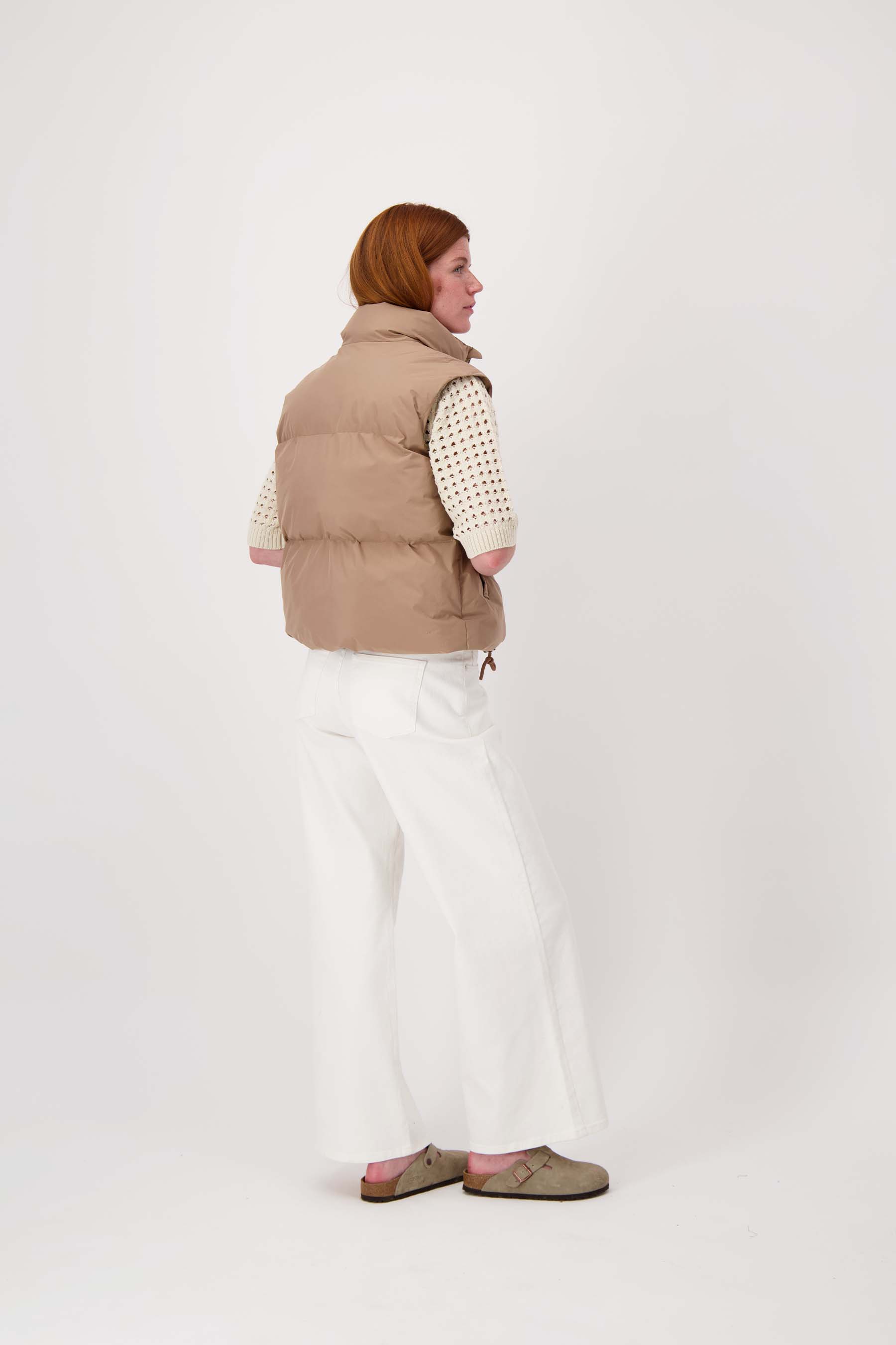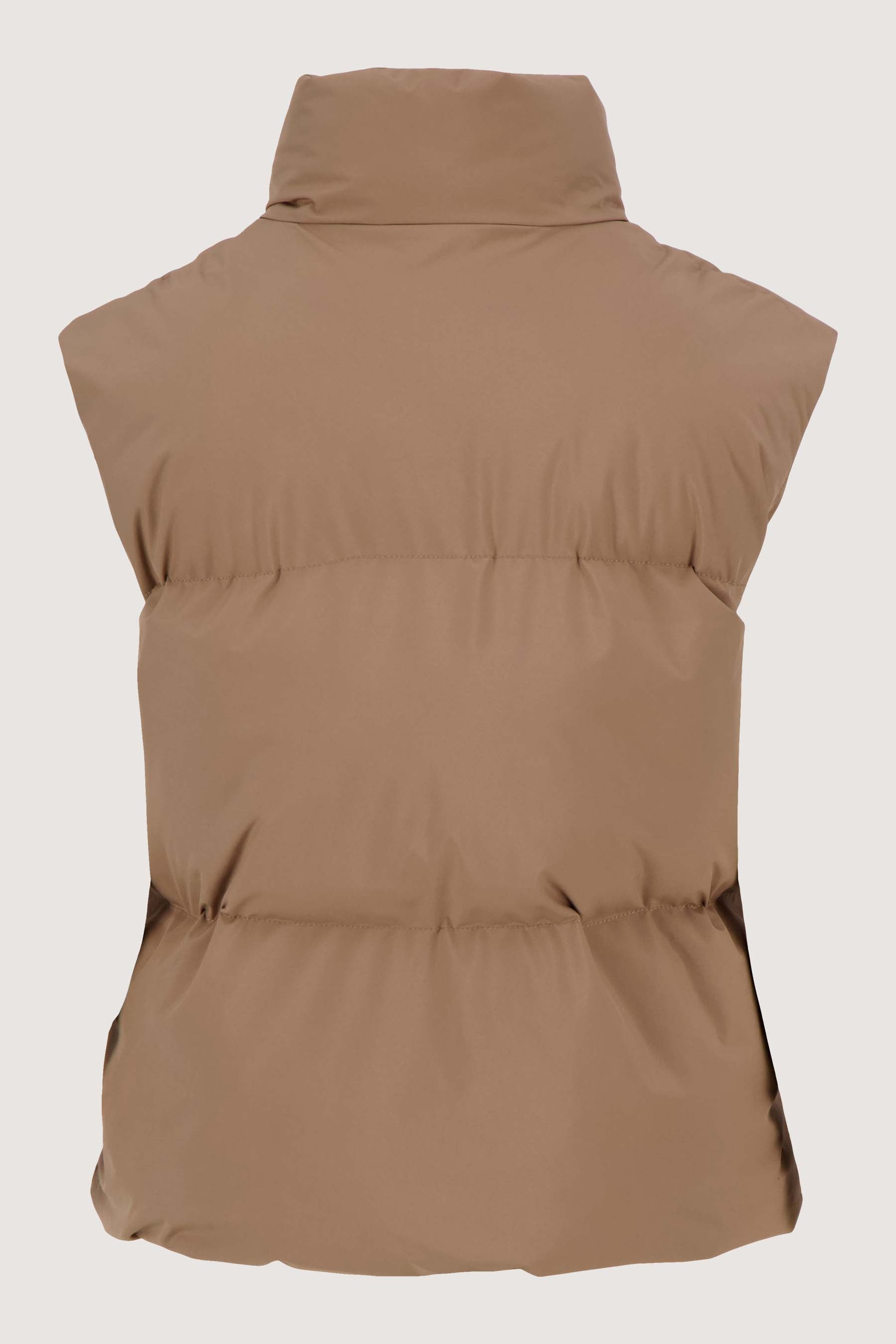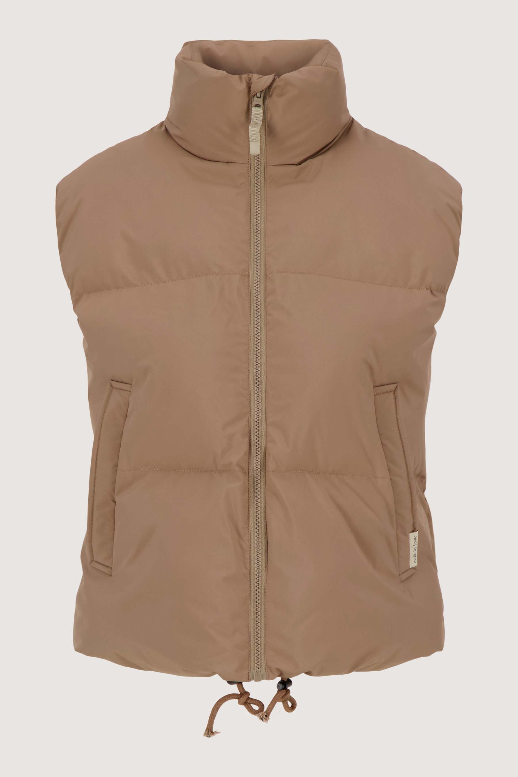 Dieser kurze Bodywarmer von Zusss ist perfekt für einen lässigen Look. Der Bodywarmer verbindet Komfort mit Stil und ist ein echtes Must-have für jede Garderobe. Die dunkle Sandfarbe sorgt für einen weichen, natürlichen Look, der sich leicht kombinieren lässt. Dank des Reißverschlusses und der praktischen Taschen ist diese Weste sowohl praktisch als auch warm. Der leicht wattierte Stoff sorgt für einen hohen Tragekomfort bei kühlem Wetter. Kombinieren Sie diese Weste mit einem unserer langärmeligen Oberteile für einen lässigen Look.