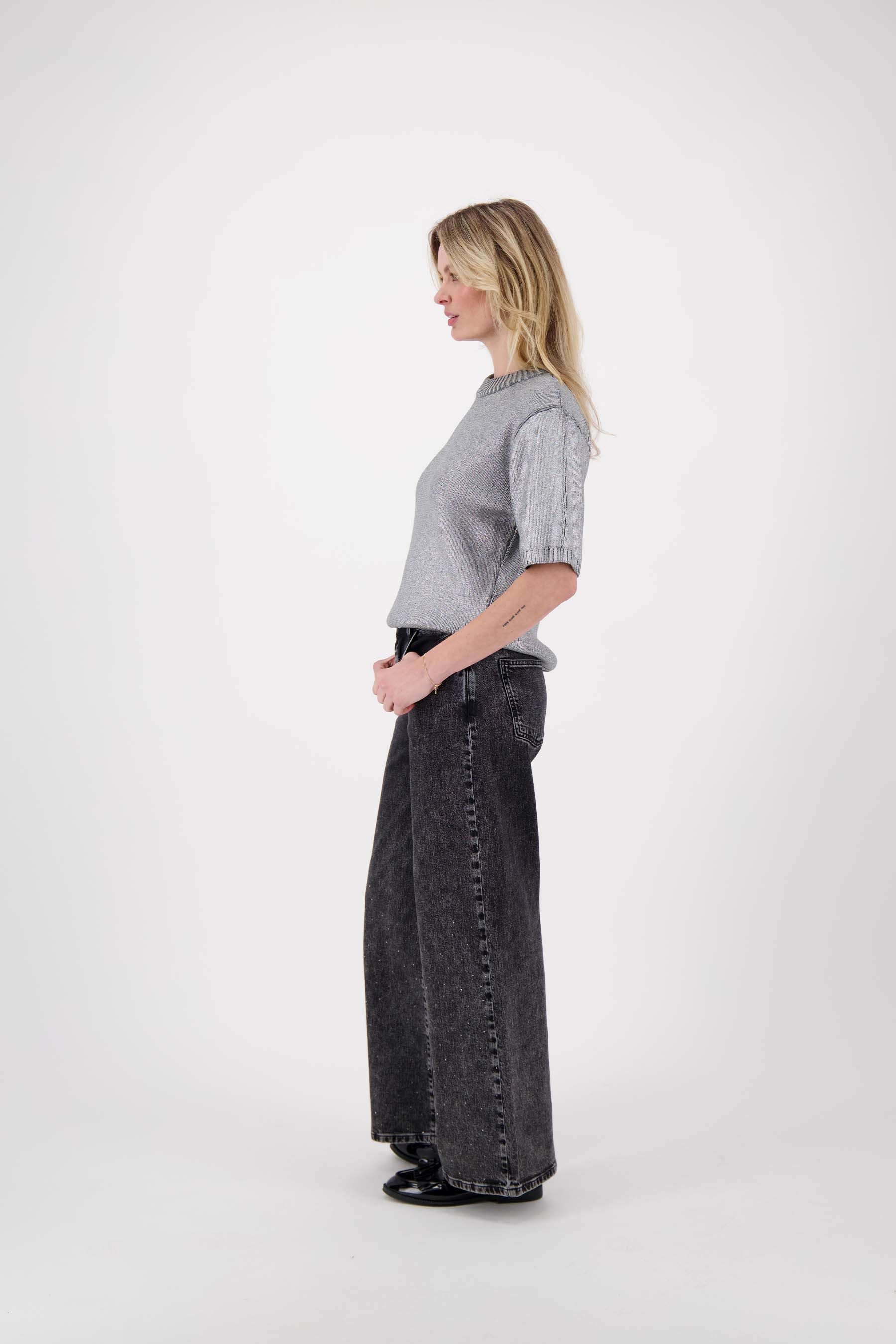 Zusss kurzärmeliger Pullover mit dezentem Silberglanz