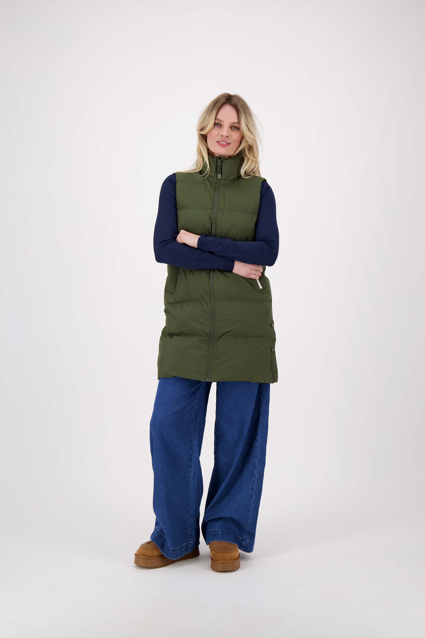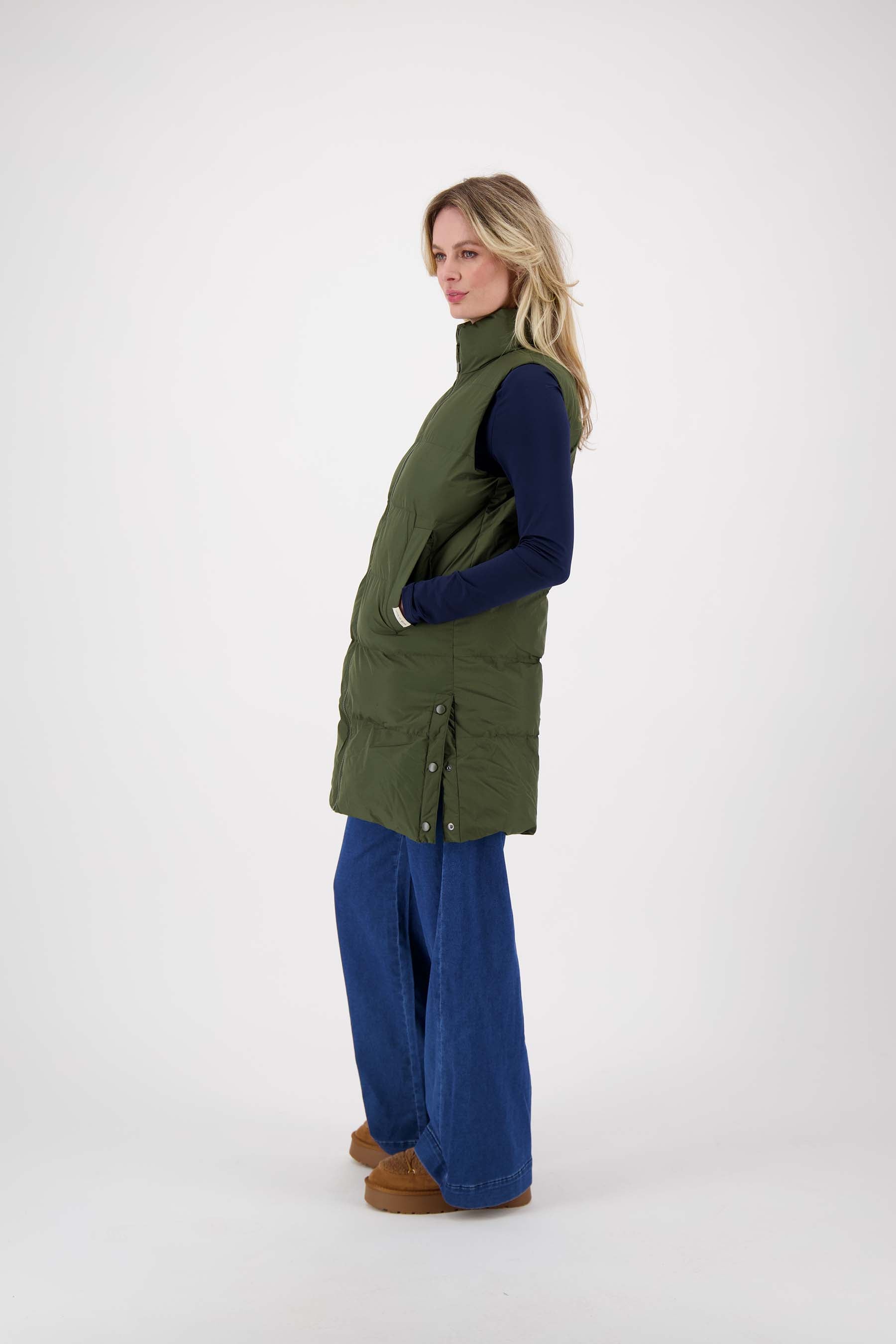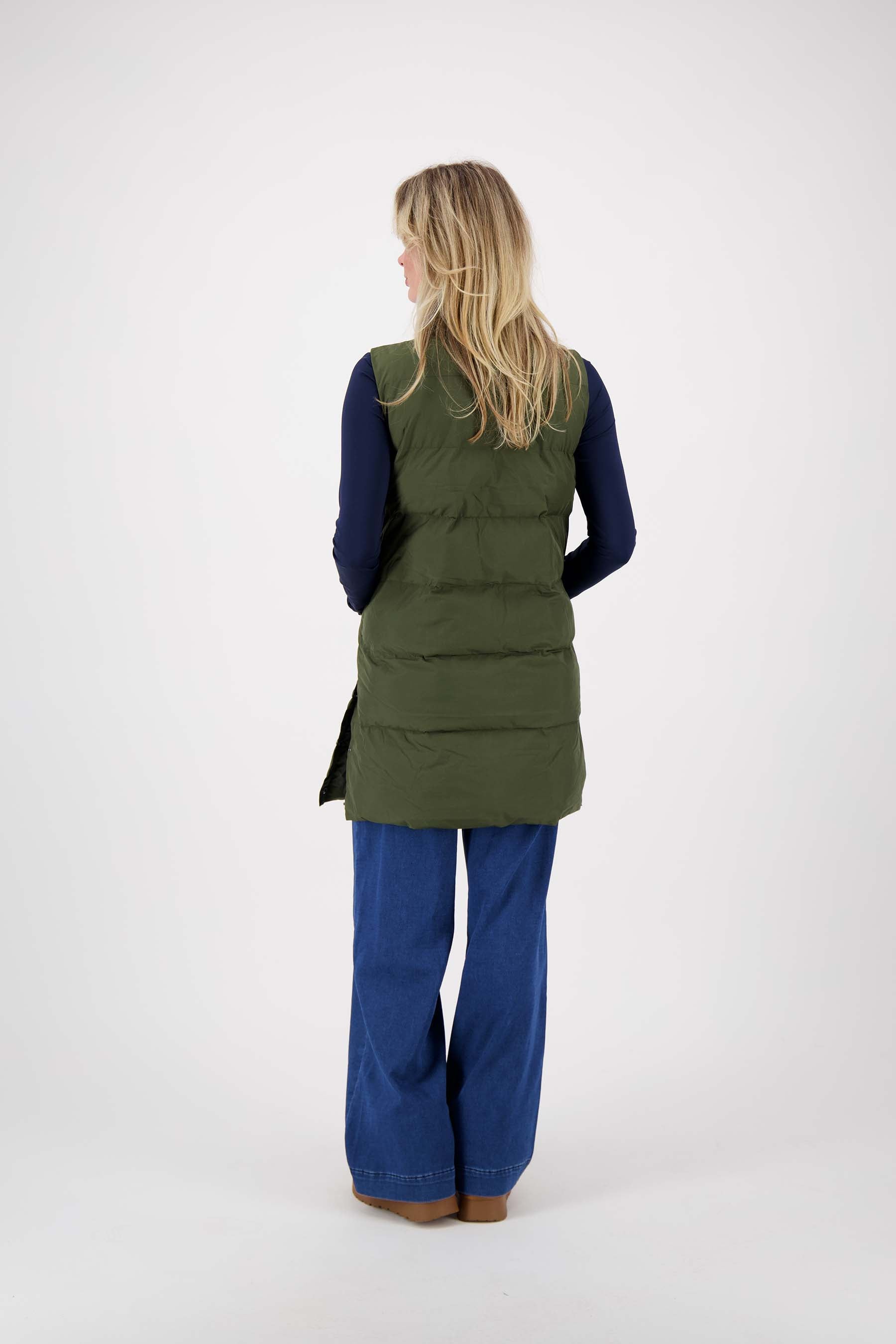 Die lange Weste von Zusss ist eine gute Ergänzung für Ihre Garderobe. Diese dunkelgrüne Weste kombiniert Komfort mit einem robusten Look und hält Sie an kühlen Tagen wunderbar warm. Dank des praktischen Designs und der längeren Länge schützt Sie diese Weste gut vor Kälte, ideal für Reisen oder in der Stadt. Mit dieser Weste in Ihrer Kollektion entscheiden Sie sich für ein einfaches und doch einzigartiges Kleidungsstück, das sich leicht mit anderen Jacken und Blazern kombinieren lässt.