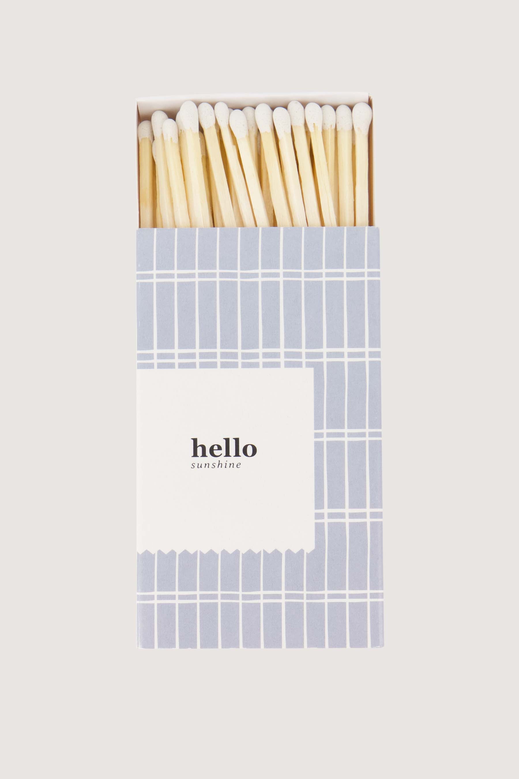 Die Zusss-Streichhölzer „Hello Sunshine“ sind das perfekte Accessoire für eine warme und gemütliche Atmosphäre in Ihrem Zuhause. Diese Streichhölzer mit blau-weißem Design verleihen Ihrem Interieur Stil. Sie sind aus hochwertigem Material mit langlebiger Qualität gefertigt und eignen sich perfekt zum Anzünden Ihrer Kerzen. Das Format ist praktisch und kompakt, sodass sie leicht mitgenommen werden können. Kombinieren Sie diese hübschen Streichhölzer mit unserer Kerzenkollektion für ein rundum gelungenes Erlebnis. Verleihen Sie jedem Moment mit den Zusss Streichhölzern „Hello Sunshine” einen Hauch von Fröhlichkeit und machen Sie ihn zu etwas Besonderem.