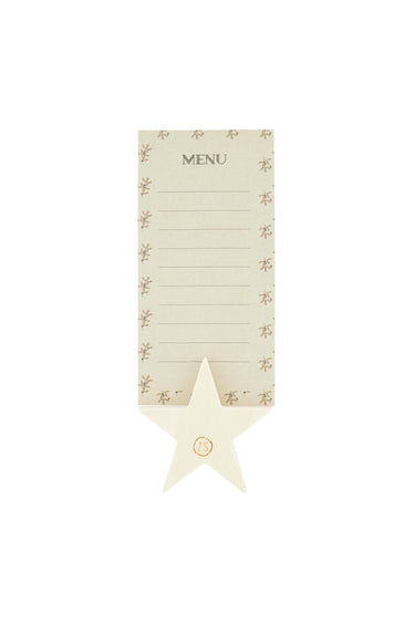 Niedliche Menükarten mit Holzständer Stern von Zusss! Diese Holzkiste ist gefüllt mit vier Papier-Menükarten, die Sie selbst ausfüllen können, und vier Holzsternen, in die Sie die Menükarte stecken können. Jede Menükarte hat einen schönen Zusss-Aufdruck und ein Zusss-Logo. Jeder hölzerne Sternständer hat ein Zusss-Logo. Die Speisekarten sind aus Papier und haben eine Kreidefarbe. Die Speisekarten sind 15 cm hoch und 7,5 cm breit. Die Holzsternständer haben einen Durchmesser von 7,3 Zentimetern. Vervollständigen Sie Ihre Weihnachtstafel mit diesen Speisekarten von Zusss!