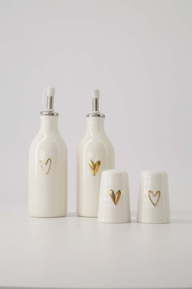 olie/azijn fles keramiek open hartje wit/goud