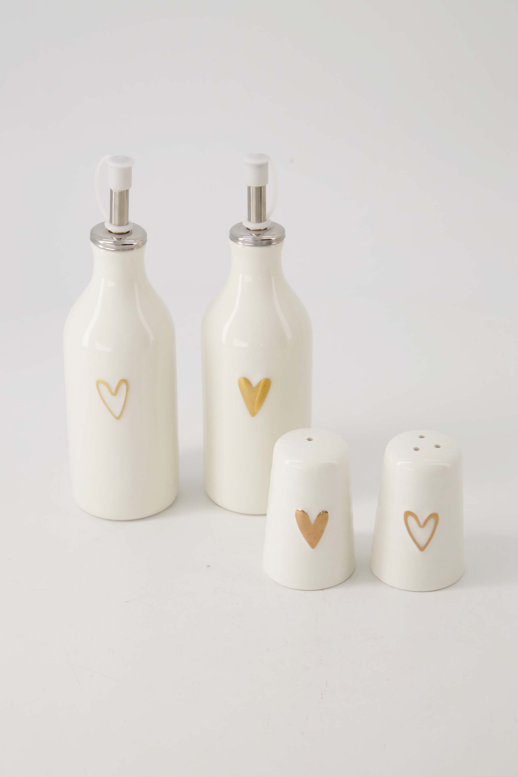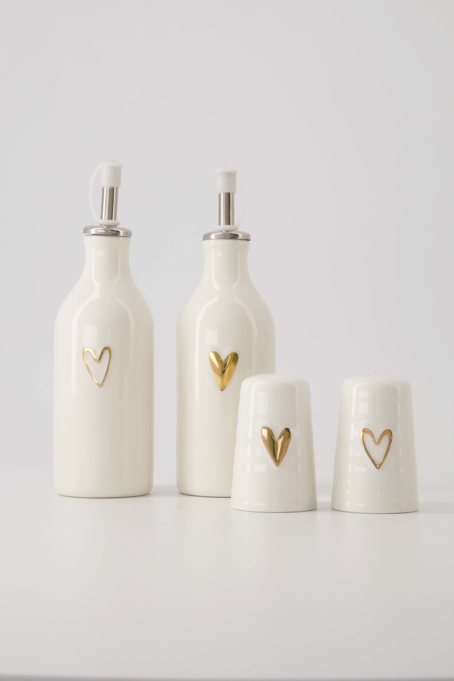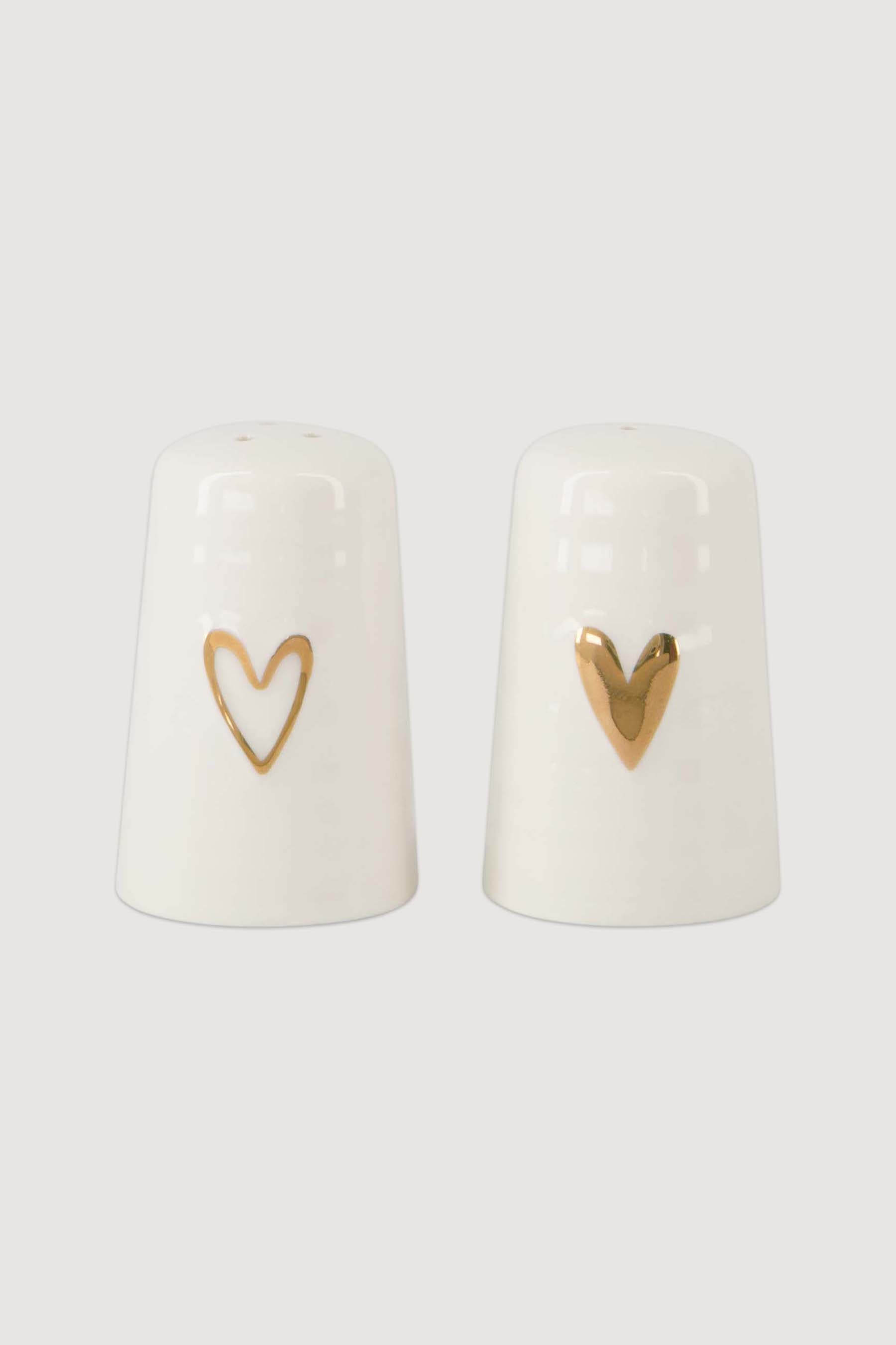 Het Zusss keramiek peper en zout stel brengt warmte aan je keukentafel met een subtiel wit en goud design. Dit keukenaccessoire, gemaakt van hoogwaardig keramiek, is voorzien van schattige hartjes in goud die het helemaal eigen maken. Het peper en zout stel is een sfeervol detail dat in elke keuken past en zorgt voor een persoonlijke touch tijdens het eten. Het wit en goud combineren mooi en geven een basic maar stoere uitstraling aan je servies.
