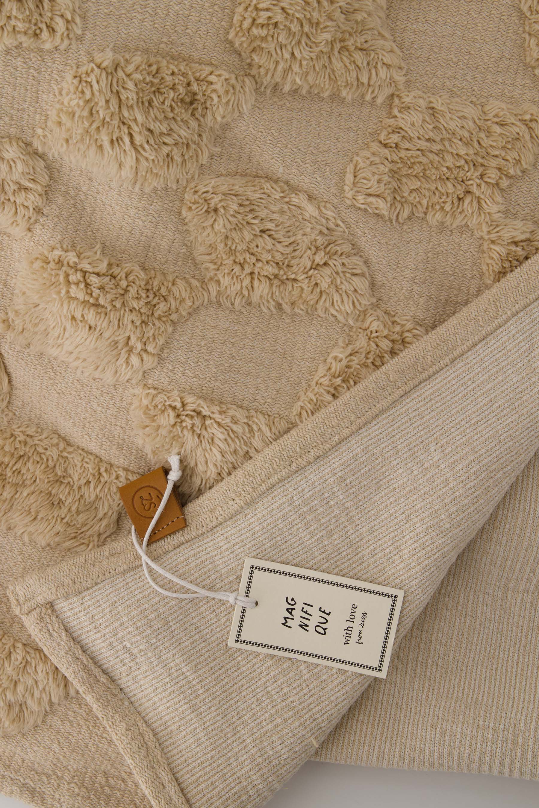 Das Plaid Herz von Zusss bringt Wärme und Gemütlichkeit in Ihr Zuhause. Das sandfarbene Plaid besticht durch sein verspieltes Reliefmuster und ein dezentes, rot gesticktes Herz. Die feine Textur macht dieses Wohnaccessoire perfekt zum Kuscheln auf der Couch oder als stilvolle Ergänzung für Ihr Wohnzimmer. Mit seinem sanften Look passt dieses Zusss-Plaid-Herz wunderbar in eine ruhige, natürliche Einrichtung. Machen Sie es sich besonders gemütlich mit diesem feinen Plaid, das Ihrem Wohnbereich eine persönliche Note verleiht.