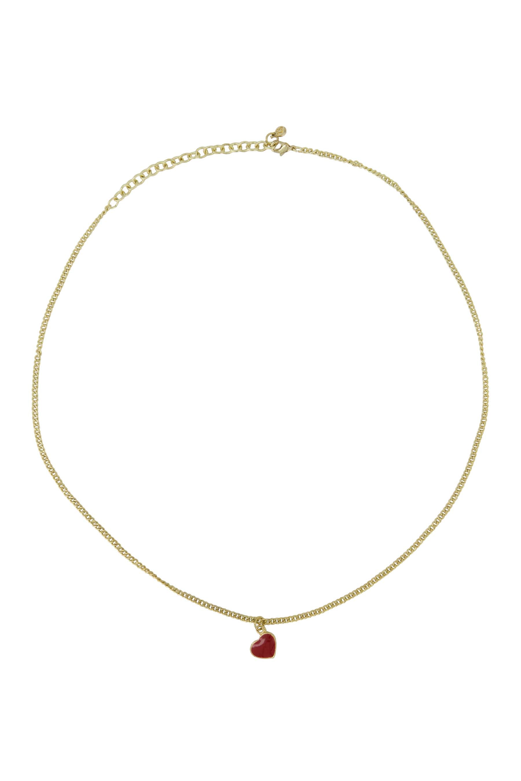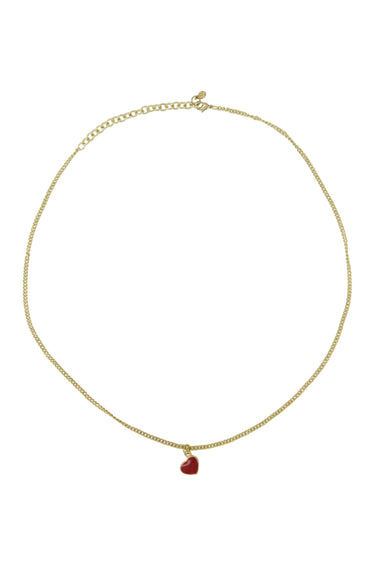 Diese Herz-Halskette von Zusss in zeitlosem Gold verleiht Ihrem Outfit das gewisse Extra. Die feine Goldkette trägt sich leicht und hat ein kleines rotes Herz als charmantes Detail. Tragen Sie sie allein oder kombinieren Sie sie mit anderem Schmuck aus unserer Kollektion, um Ihren eigenen Stil zu kreieren. Die Halskette glänzt dezent und ist perfekt für jeden Anlass.