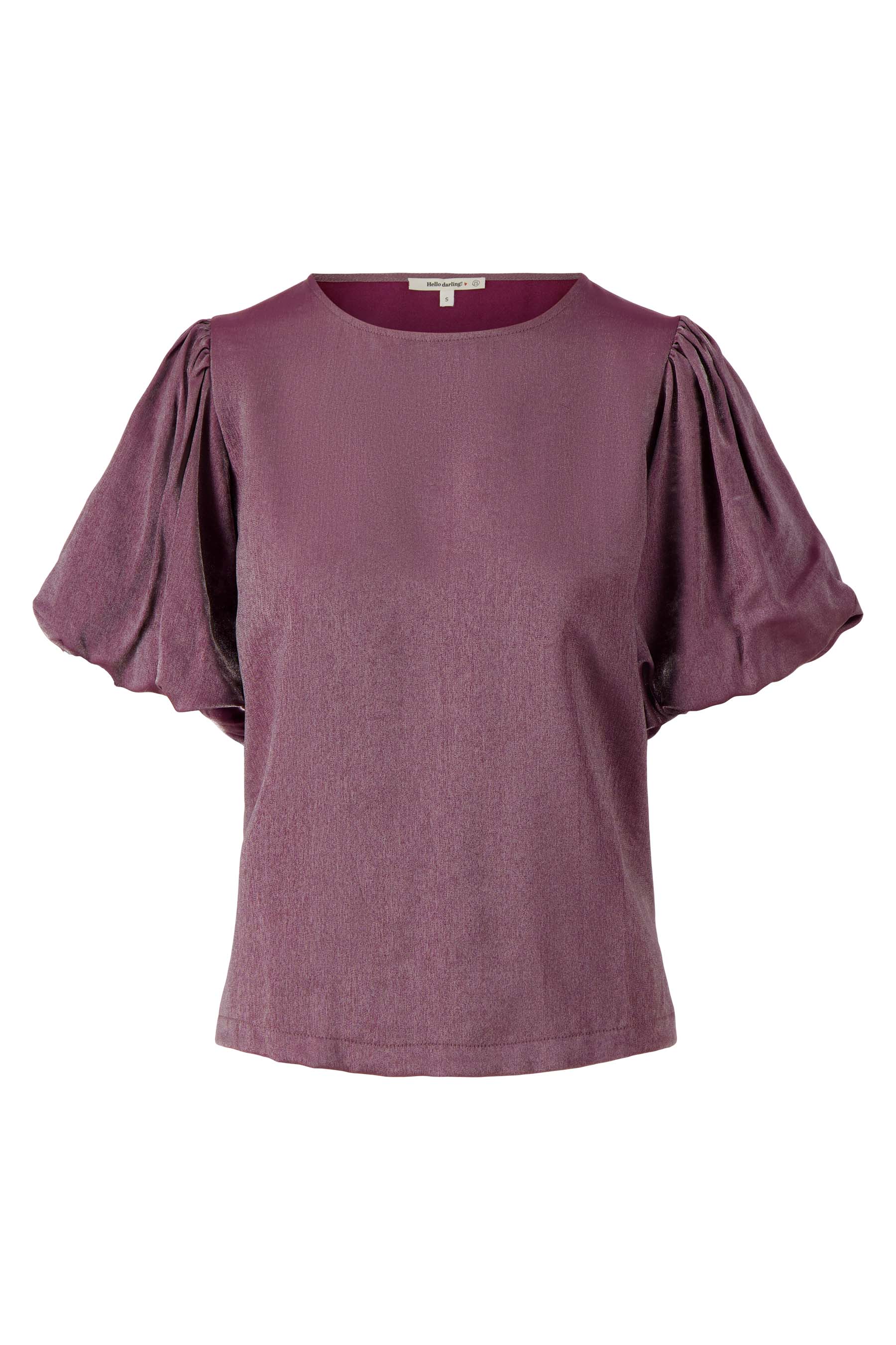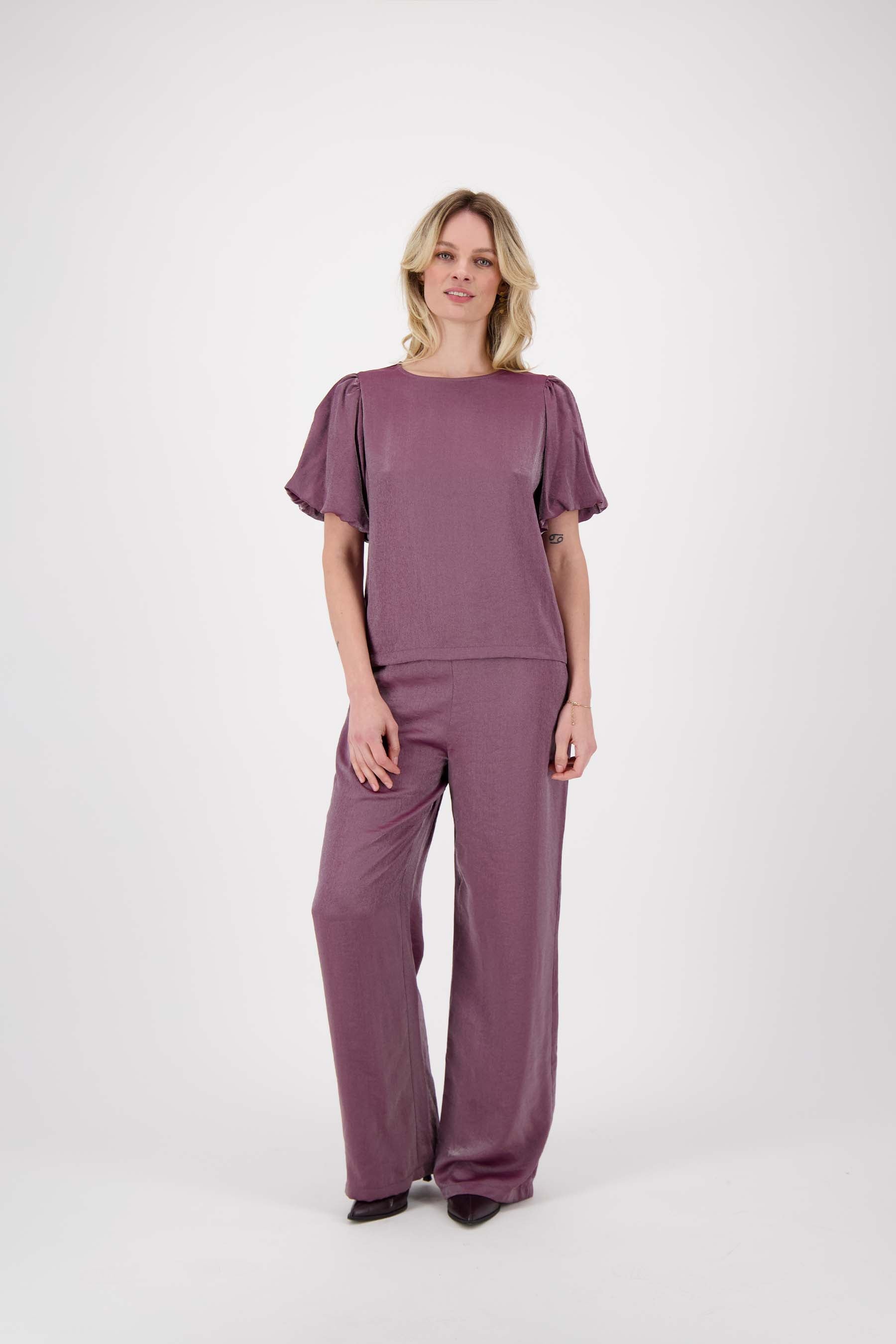 Zusss Satin-Top mit Puffärmeln in dezentem Aubergine