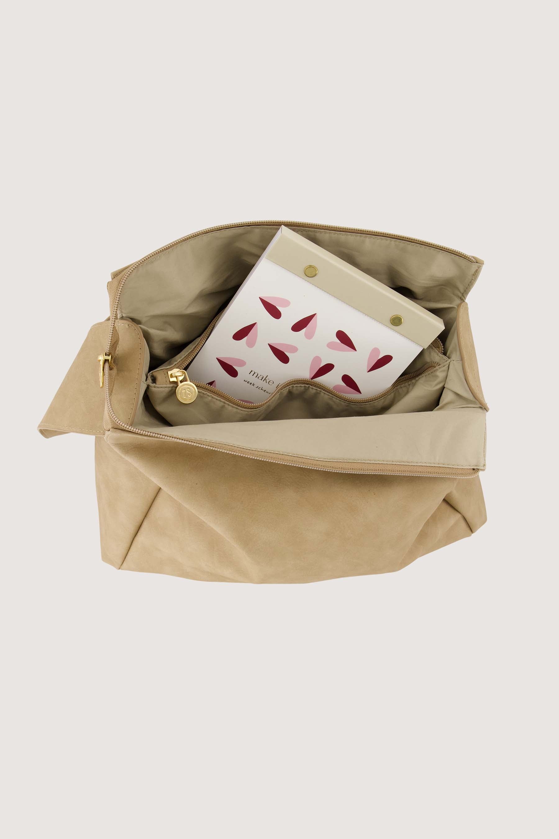 De Zusss schoudertas met brede band is een stijlvolle musthave in de categorie tassen. Deze schoudertas combineert comfort en eenvoud, perfect voor dagelijks gebruik. De taupe kleur geeft de tas een warme, natuurlijke uitstraling die makkelijk te combineren is. Dankzij de brede band draag je de tas prettig en stevig, ideaal om je essentials veilig mee te nemen. Deze schoudertas valt op door zijn tijdloze design en praktische draagcomfort. Binnenin is de tas voorzien van een groot tussenvak met ritssluiting én een binnenvakje met ritssluiting, zodat je jouw spullen overzichtelijk en veilig kunt opbergen. Ontdek deze veelzijdige tas binnen onze tassen collectie voor een basic en toch stoere look.
