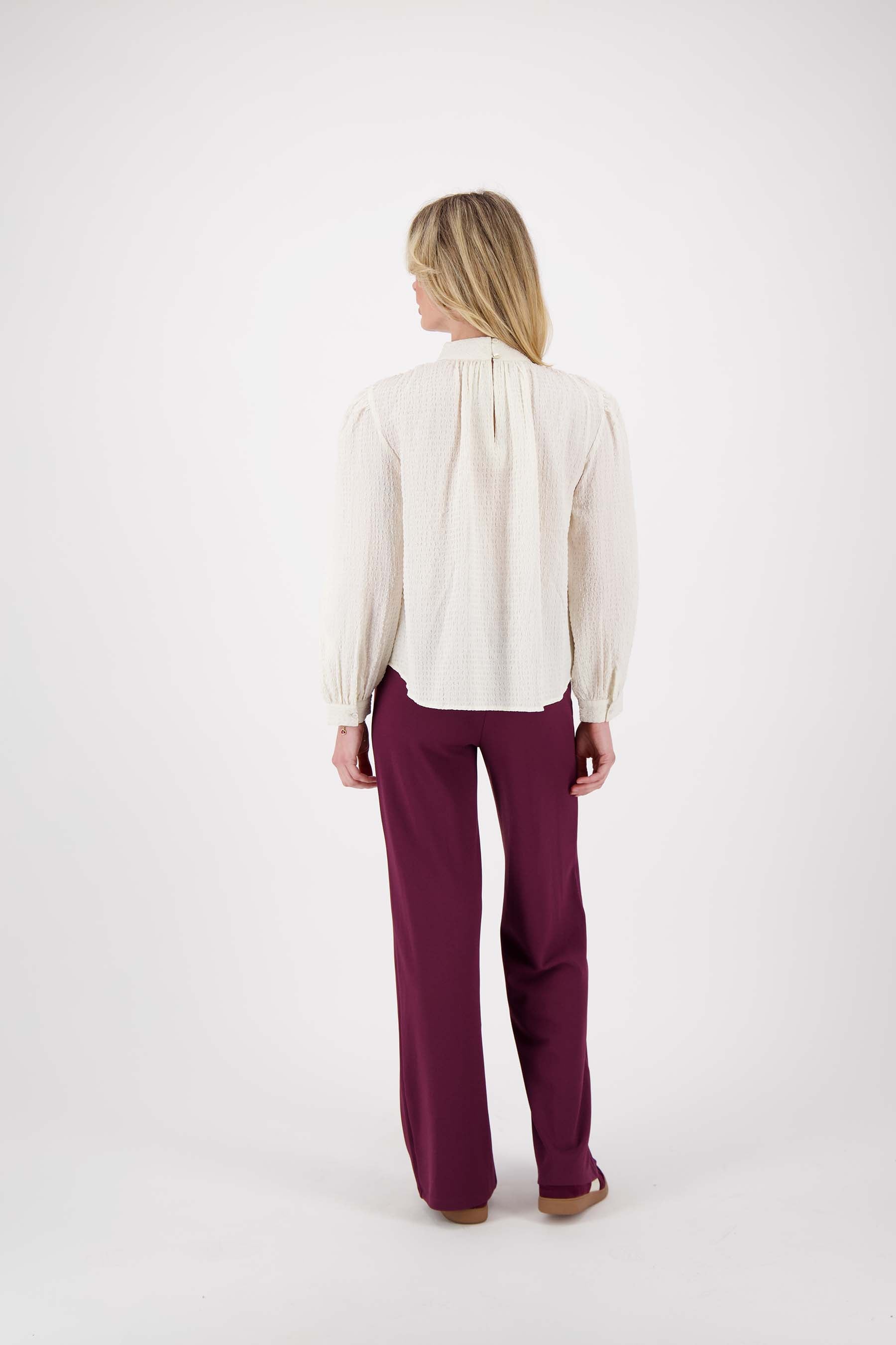 Diese Seersuckerbluse von Zusss kombiniert eine weiche, beige Farbe mit einer Waffelstruktur, die das ganze Jahr über getragen werden kann. Die Bluse hat einen dezenten Stehkragen und lange Ärmel mit schmalen Manschetten, die für einen femininen und bequemen Sitz sorgen. Die Seersucker-Bluse ist ideal für lässige, aber gepflegte Kleidung und lässt sich perfekt mit unserer Kollektion von Blusen und Oberteilen kombinieren. Mit dieser Bluse verleiht Zusss Ihrer Garderobe das gewisse Extra an Komfort, ohne Kompromisse beim Stil einzugehen.