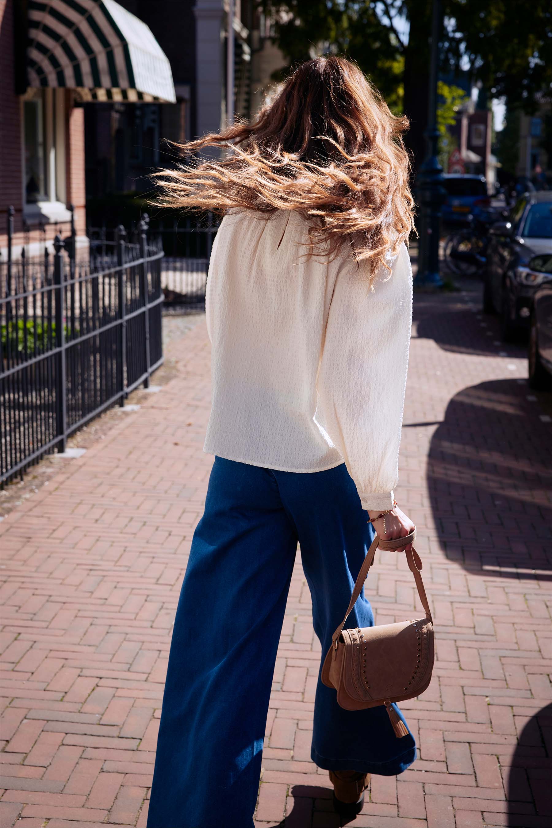 Deze seersucker blouse van Zusss combineert een zachte, beige kleur met een gewafelde structuur die het hele jaar door draagt. De blouse heeft een subtiele... Lees meer
