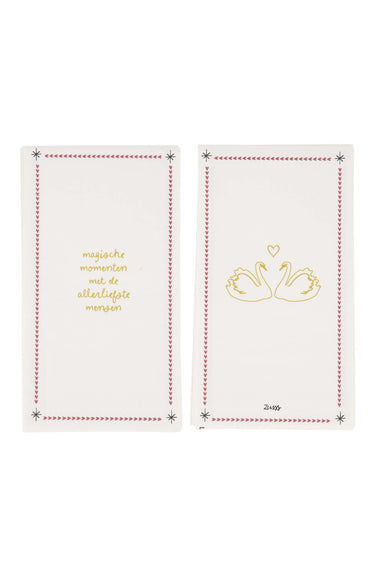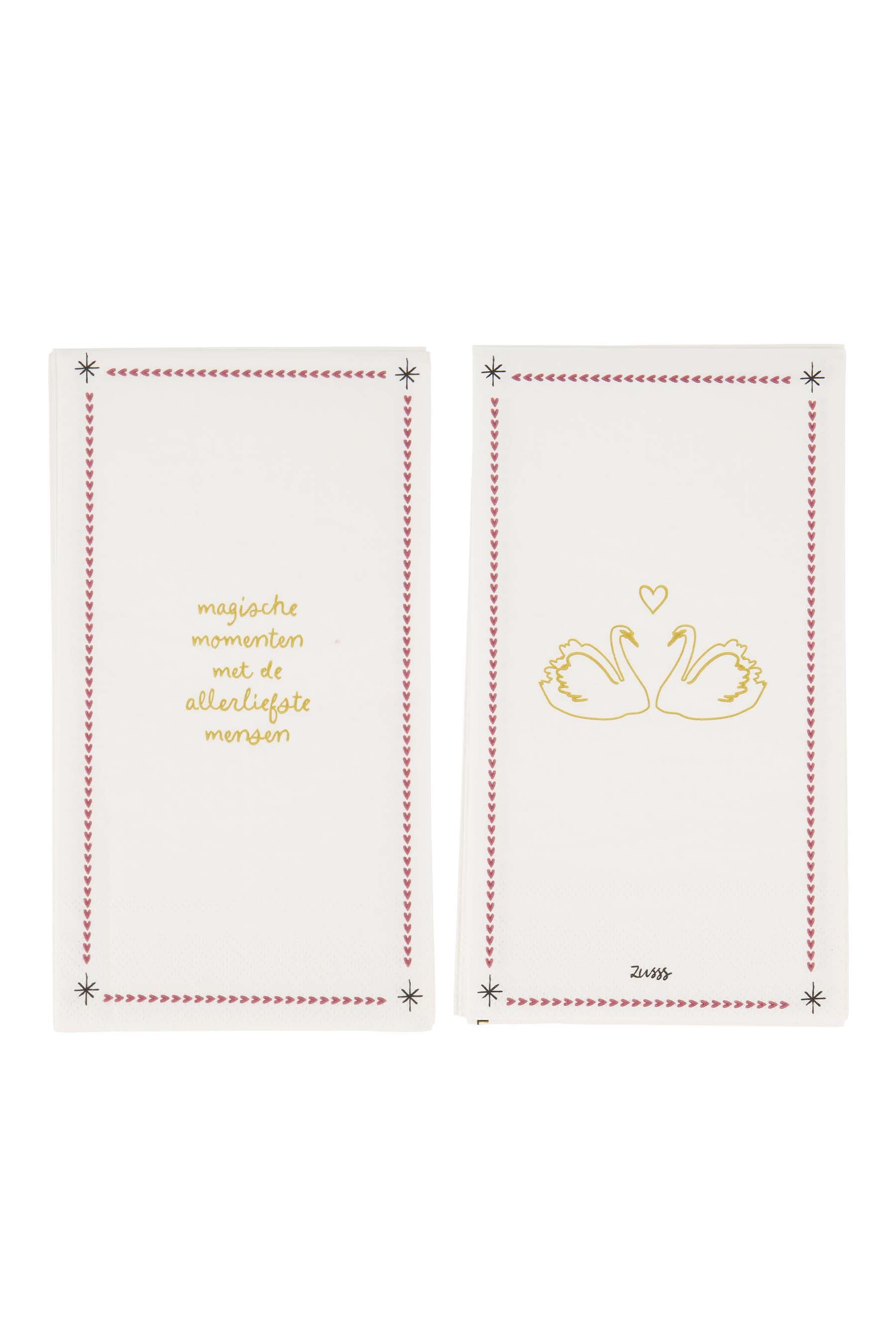 Die Zusss-Servietten magic moments geben Ihnen und Ihren Lieben einen besonderen Blick beim Abendessen. Diese Servietten magic moments sind auf gemütliche Tischmomente zugeschnitten, mit einem liebevollen Design in Weiß mit Dunkelrot. Sie haben ein rechteckiges Format und sind perfekt, um dem Tisch das gewisse Extra an Wärme zu verleihen. Kombinieren Sie sie einfach mit anderen Accessoires von sisss, um Ihren Wohnstil zu vervollständigen.