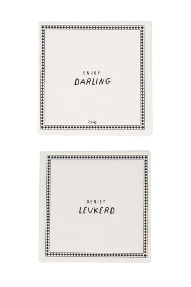 Diese quadratischen Servietten von Zusss sind perfekt für Ihre Küche und machen jeden Tisch besonders gemütlich. Die quadratischen Servietten kombinieren eine sanfte Sandfarbe mit einem stilvollen anthrazitgrauen Rand und dem Aufdruck "Enjoy leukerd" in der Mitte. Diese quadratischen Servietten schaffen eine warme Atmosphäre bei jeder Mahlzeit und passen wunderbar in Ihre Küchentextilien-Kollektion. Verleihen Sie Ihrem Geschirr ein subtiles und einzigartiges Detail mit diesen Servietten im Quadrat von Zusss, die sowohl praktisch als auch charmant sind.