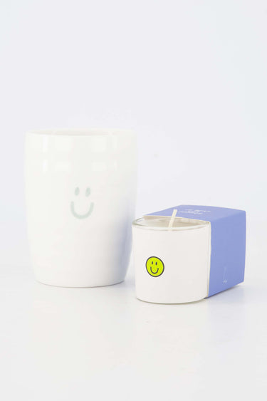 Deze Zusss set met smiley design brengt vrolijkheid in je interieur. De set bestaat uit een wit keramiek koffiemokje met een schattige blauwe smiley op de voorzijde en een bijpassend geurkaarsje in wikkel. De combinatie van wit en blauw geeft een frisse uitstraling die in elk interieur past. Deze smiley set is perfect als decoratie en creëert een gezellige sfeer in elk vertrek. Ontdek meer vrolijke accessoires in onze interieur collectie.