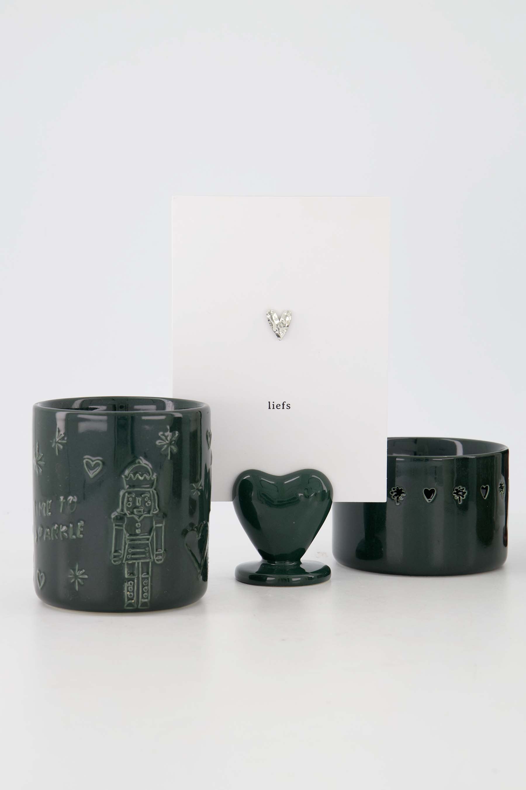 De cadeauset 'Time To Sparkle Donkergroen' is een stijlvol cadeau om te geven. De set bestaat uit een geurkaars, waxinelichthouder en kaartenstandaard, allemaal van keramiek! Deze set voegt een warme, persoonlijke touch toe aan elk interieur en is perfect om een speciaal moment of boodschap extra glans te geven. Het brengt warmte en gezelligheid in huis.