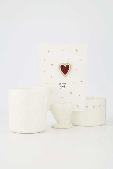 De cadeauset 'Time To Sparkle Wit' is een stijlvol cadeau om te geven. De set bestaat uit een geurkaars, waxinelichthouder en kaartenstandaard, allemaal van keramiek! Deze set voegt een warme, persoonlijke touch toe aan elk interieur en is perfect om een speciaal moment of boodschap extra glans te geven. Het brengt warmte en gezelligheid in huis.