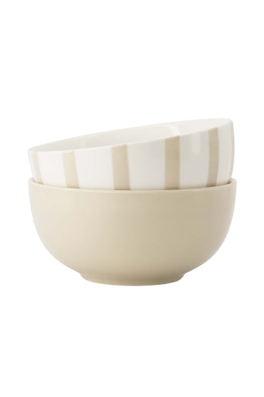 Deze Zusss kommen set in wit en zand is perfect voor jouw ontbijt of salade. Het set van 2 kommen in keramiek toont een stijlvolle witte kom met zandkleurige strepen en een effen zandkleurige kom. Met een diameter van 15 cm en een hoogte van 6,5 cm zijn ze lekker groot. Dit kommen set is gemaakt van hoogwaardig keramiek en past mooi bij onze andere servies artikelen. Voeg deze Zusss kommen set toe voor een basic en stoer servies op tafel.