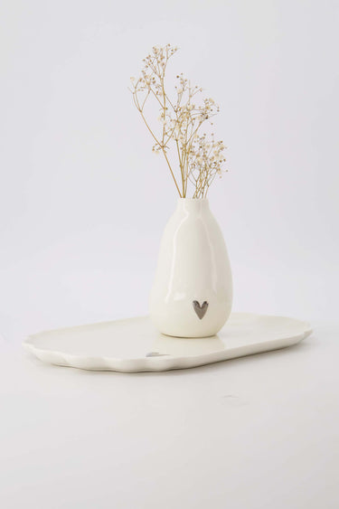 Vase Keramik Herz Weiß/Silber - Größe: Ø7.5x13cm