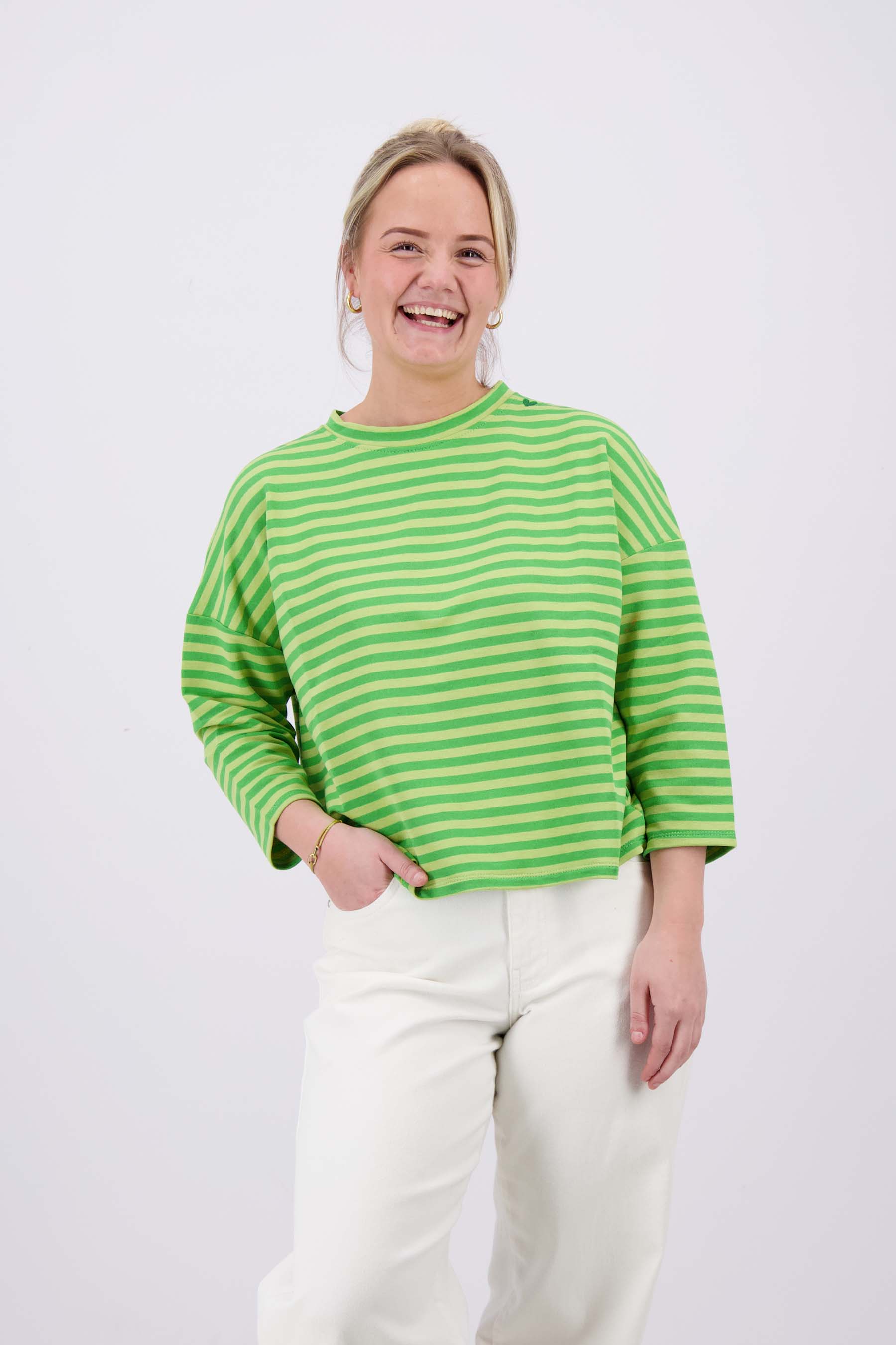 streep sweat shirt boxy 3/4 mouw