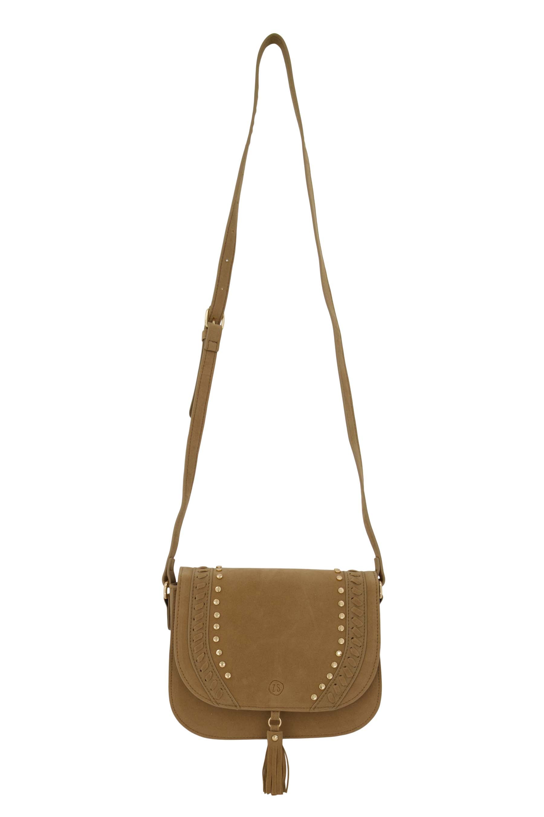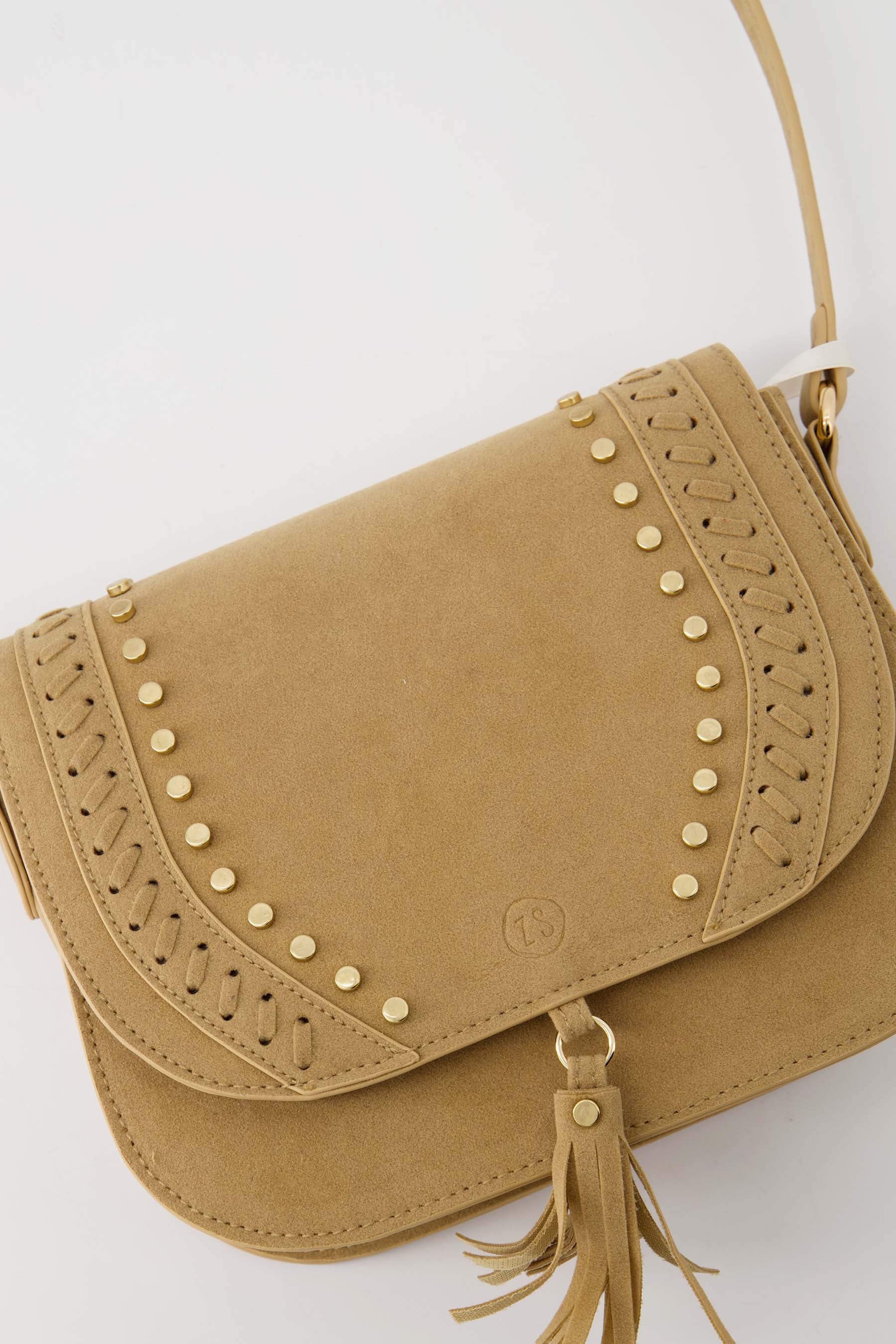 Zusss Umhängetasche mit Nieten und Quaste in beige Stil
