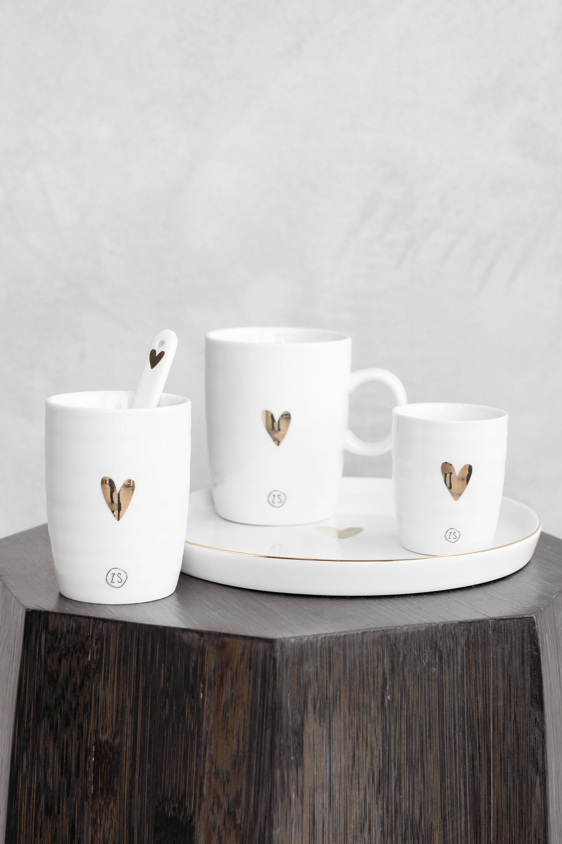 Theemok van Zusss met een gouden hartje erop. Kenmerkend van goud geglazuurd servies is dat dit niet in de vaatwasser kan, vandaar dat je deze... Lees meer