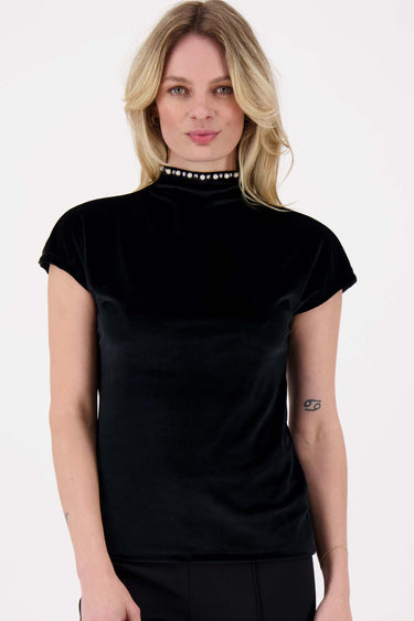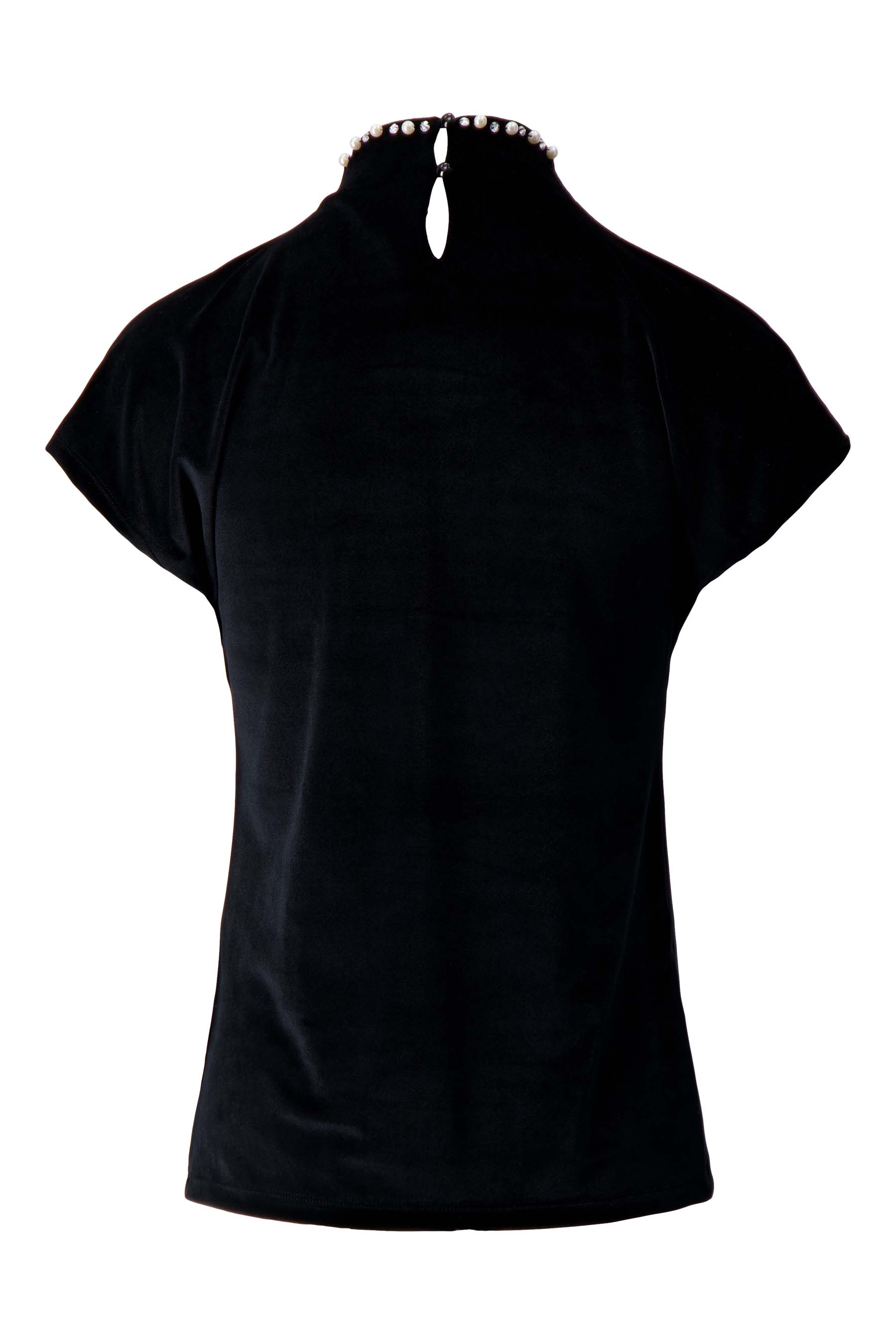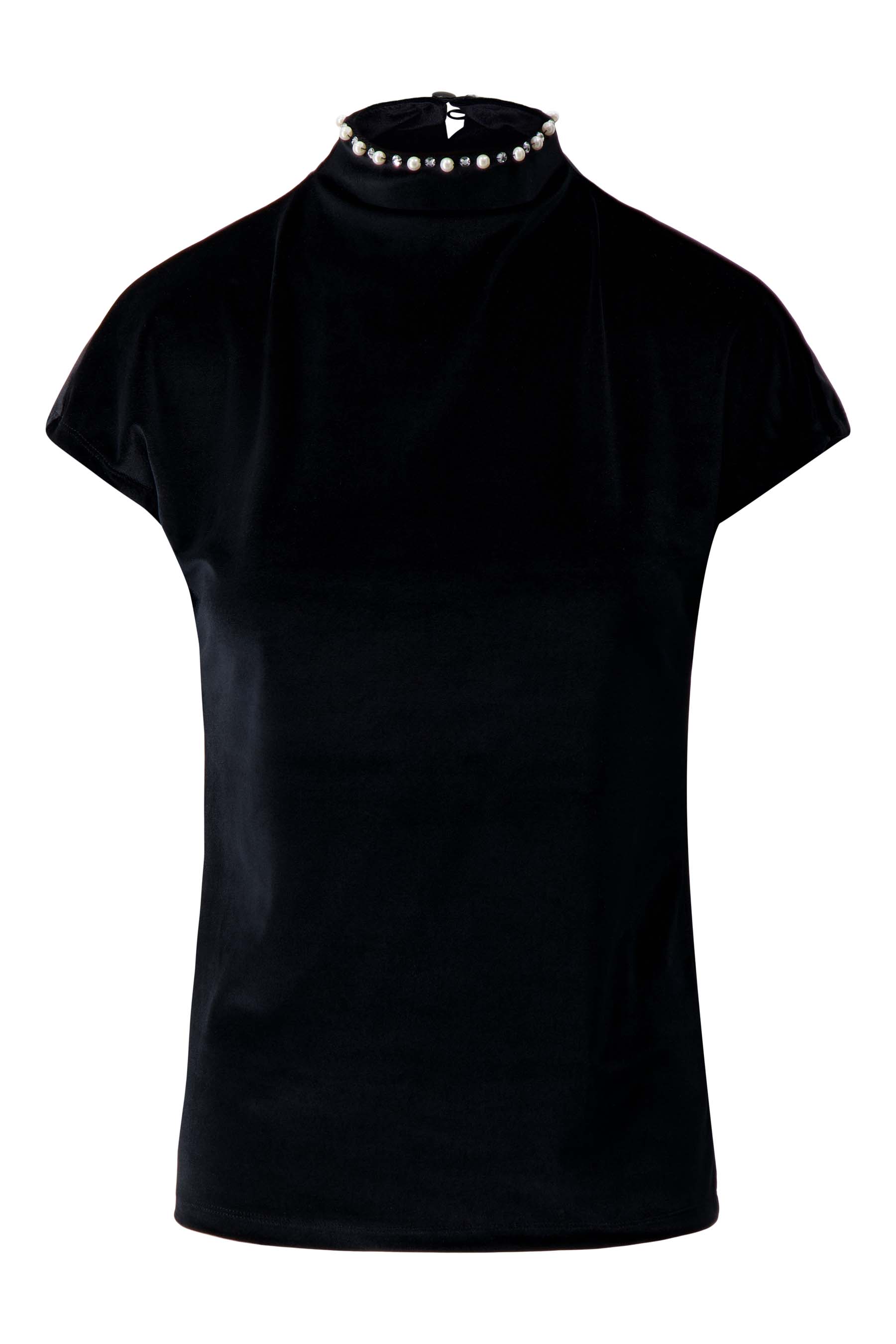 Schwarzes Schildkrötentop mit Perlen für einen raffinierten Look