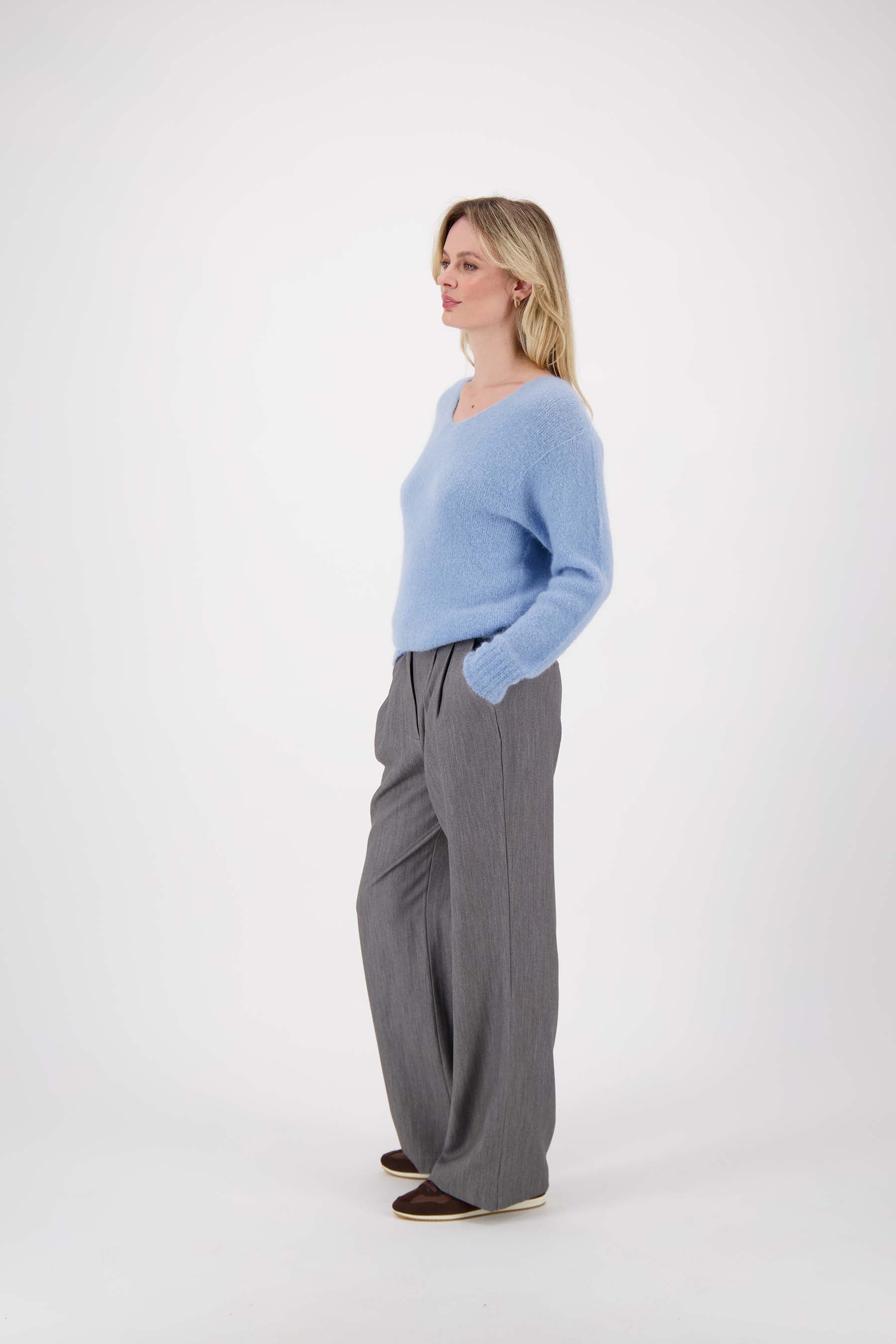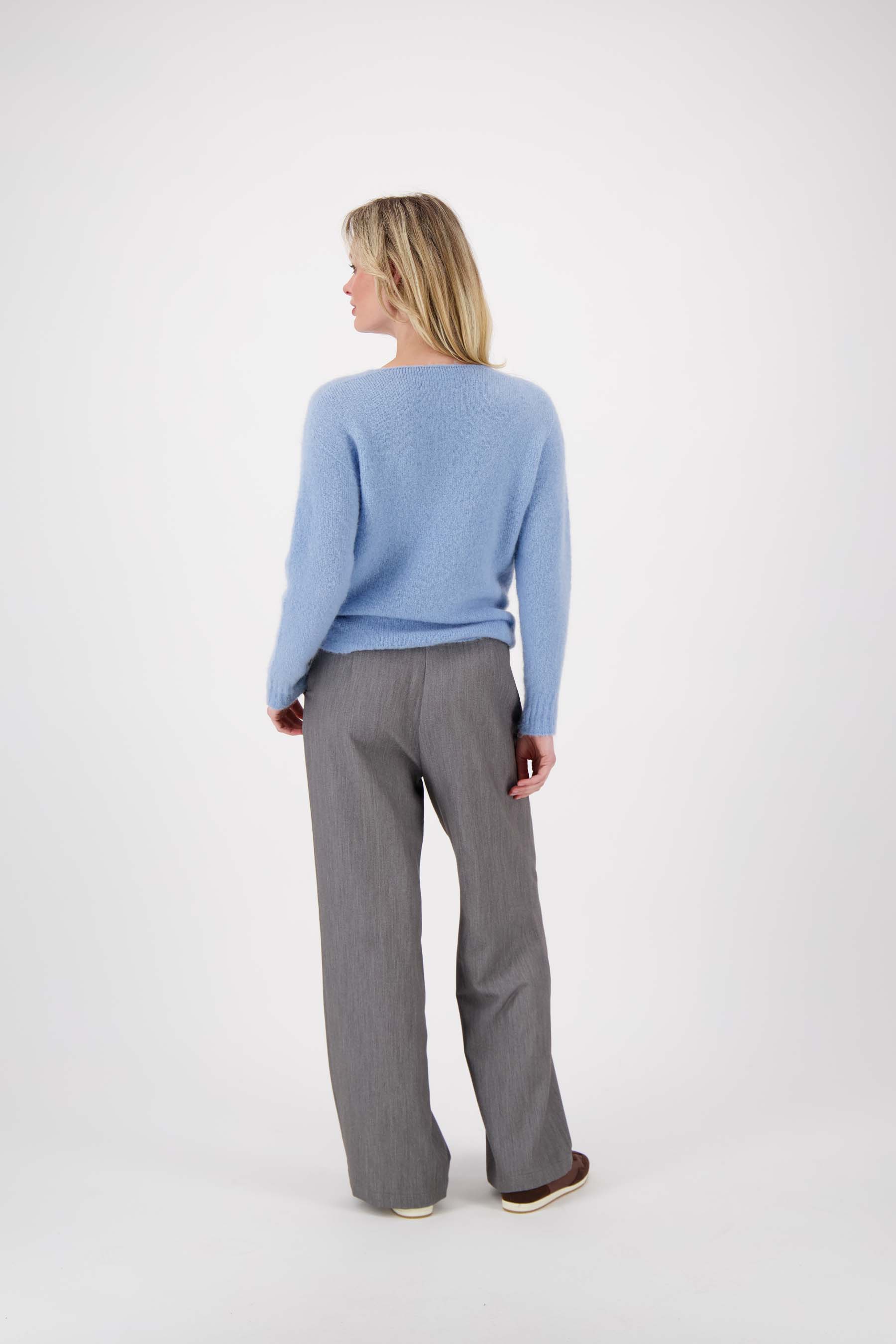 Dieser Zusss-Mohair-Pullover mit V-Ausschnitt verleiht Ihrem Outfit ein warmes und weiches Gefühl. Der feine Stoff hat eine angenehme Haptik und ist in einem dezenten Eisblau gehalten, perfekt für kühlere Tage. Der Mohair-Pullover hat einen entspannten Schnitt mit langen Ärmeln und einem klassischen V-Ausschnitt, der für einen zeitlosen und vielseitigen Look sorgt. Kombinieren Sie ihn einfach mit Ihren Lieblingsbasics für ein mühelos stilvolles Outfit, bei dem Ihr Komfort immer an erster Stelle steht. Der Pullover passt perfekt zu den anderen Pullovern der Zusss-Kollektion.