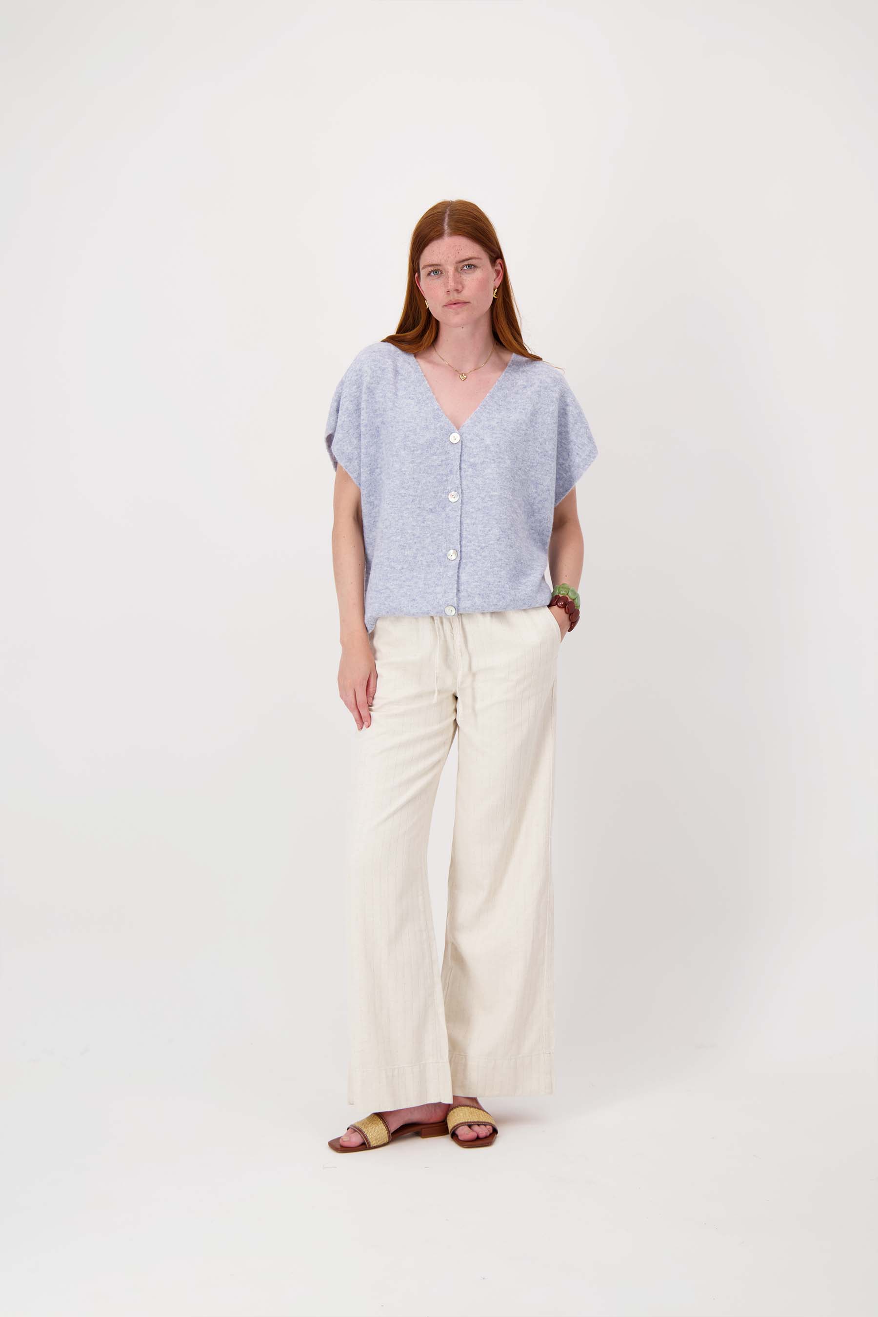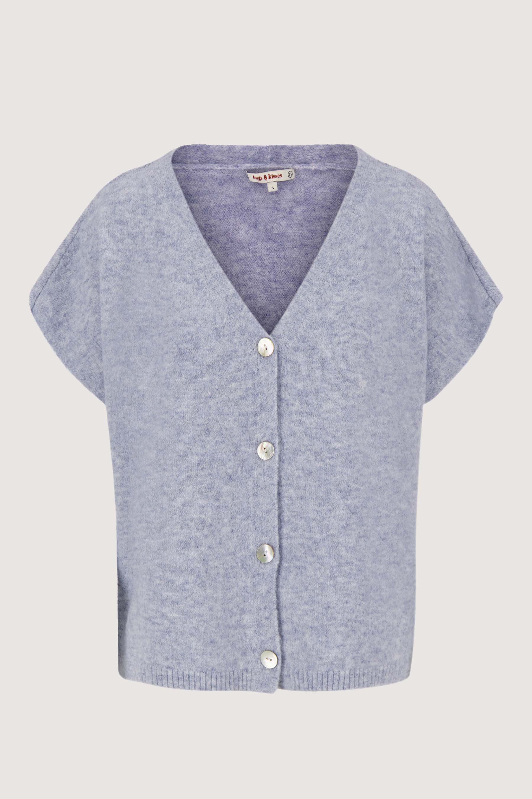Dit Zusss V hals vestje is een stijlvolle must-have in jouw garderobe. Het vestje valt op door zijn zachte melange garens en mid blue denim kleur, perfect voor een casual en toch elegante look. Met de knoopsluiting aan de voorkant en de comfortabele pasvorm is dit vestje ideaal voor elk seizoen. Combineer het met je favoriete hemdjes of mesh tops voor een speelse, warme outfit.