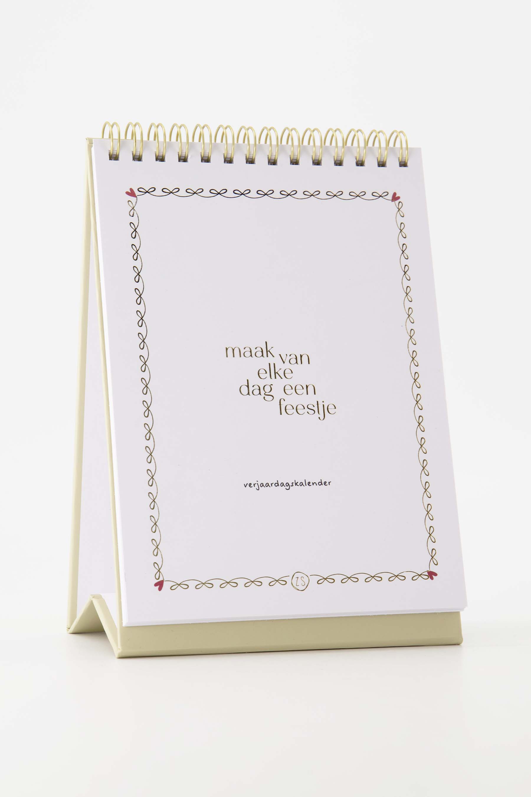 De Zusss verjaardagskalender zand helpt je alle verjaardagen bij te houden zodat het elke dag een feestje is. Deze kalender heeft een zachte zandkleur en staat met zijn speelse gouden rand en handgeschreven tekst stijlvol op elk bureau of kastje. De kalender is handig staand vormgegeven en nodigt uit om verjaardagen nooit meer te vergeten. Dankzij de praktische opzet past deze Zusss verjaardagskalender zand goed bij de rest van je woonaccessoires en geeft hij een warm accent aan je interieur.